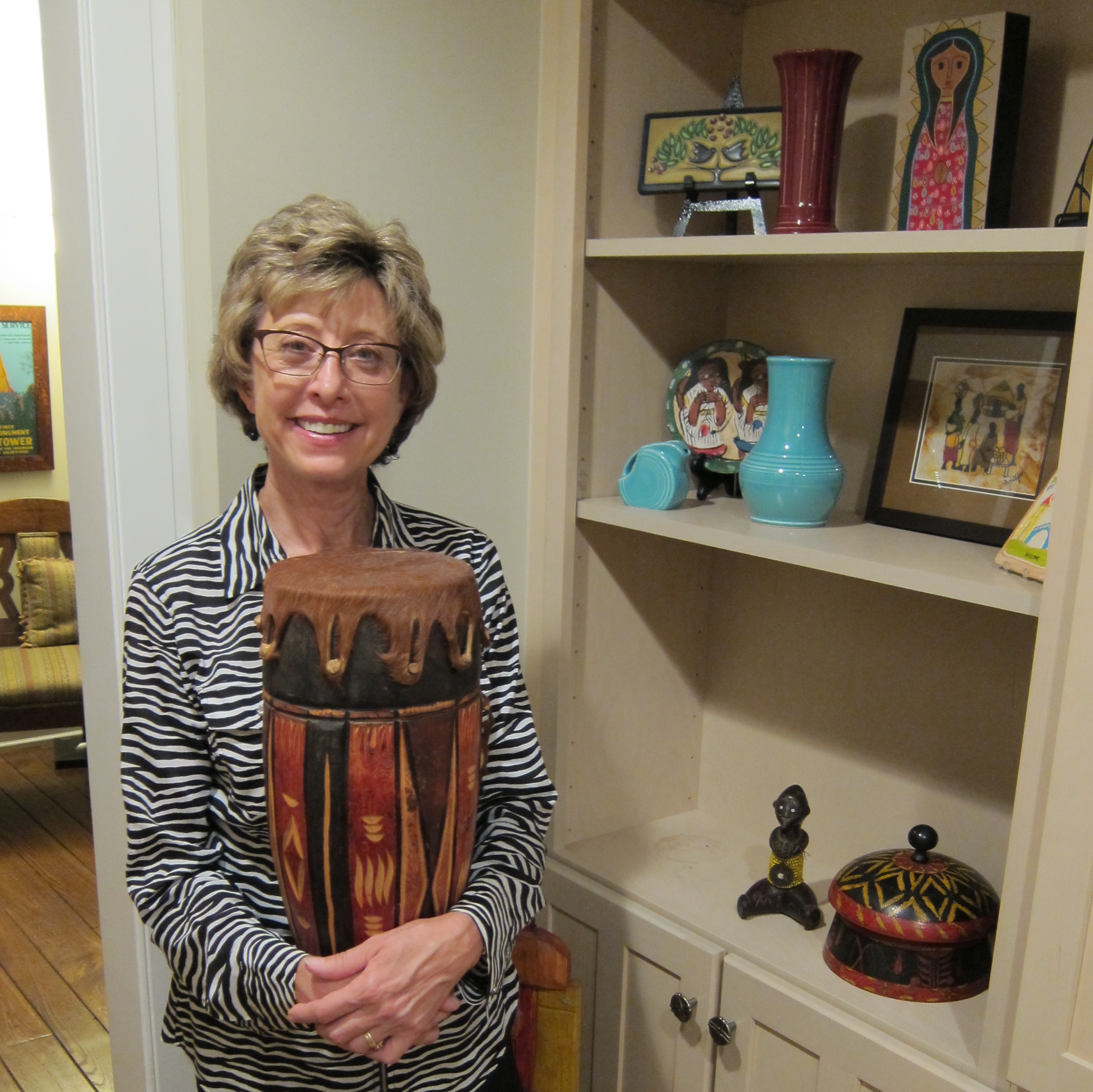 “Colorful” is an apt description for Mark and Sue Real, although “passionate” and “knowledgeable” would be good contenders too. We were struck by myriad bright colors and textures from the moment we stepped into the house and saw the variety of Fiestaware vases in the kitchen, fresh local produce on the counter, amazing masks and artwork on the walls, and over 400 books in Mark’s presidential library—more on that in a moment.