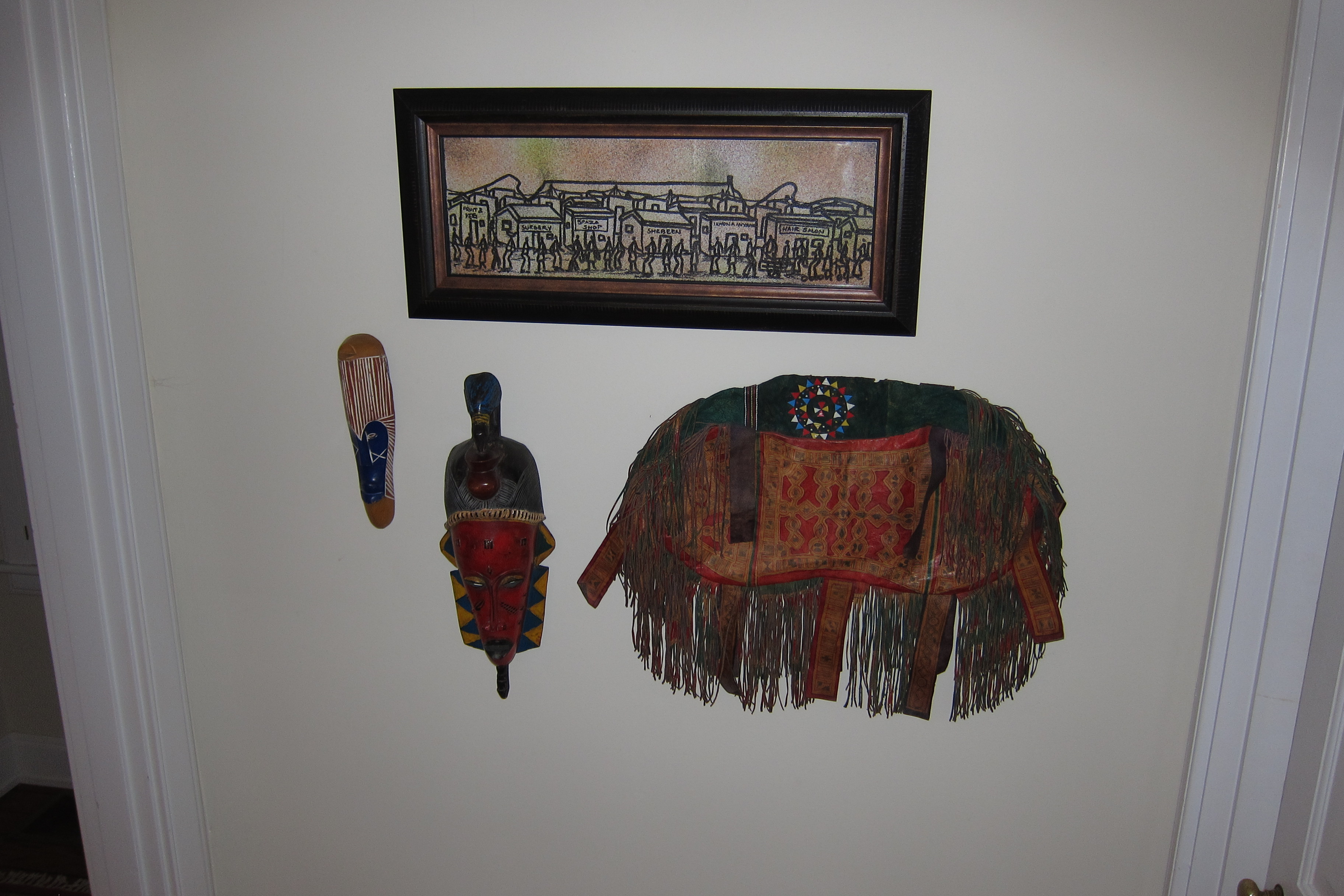We walked around their home, looking at the paintings and artifacts on the walls, getting the impression of an artfully curated museum. “This one is from Papua New Guinea. This one from Egypt. This one from Greenland…Botswana…Guatemala…” I counted dozens of masks on the walls and learned that fifty or sixty more reside in the attic for now.