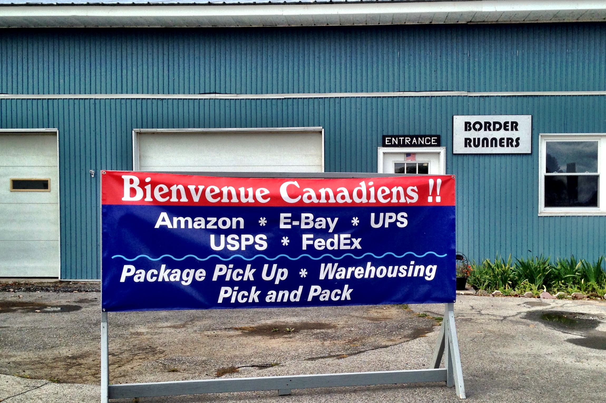 Rouses Point is the last stop in New York before you hit the Canadian border. Or as we arrived, it was the first stop from Canada, and apparently a popular location for Canadian border runners looking to save money. Canadians who are out of the country 48 hours or more can claim goods worth up to CAN$800 without paying any duty and taxes. Montreal is just 40 minutes away, so our friends to the north can have a lovely weekend in New England and then make a quick stop here on their way home to pick up pre-purchased items, sold at US (or rather online) prices, with no Canadian sales tax. Even big ticket items like TVs cross the border facilement (unlike the stopped-at-gunpoint difficulty Nancy once had bringing milk from France to Switzerland.)
