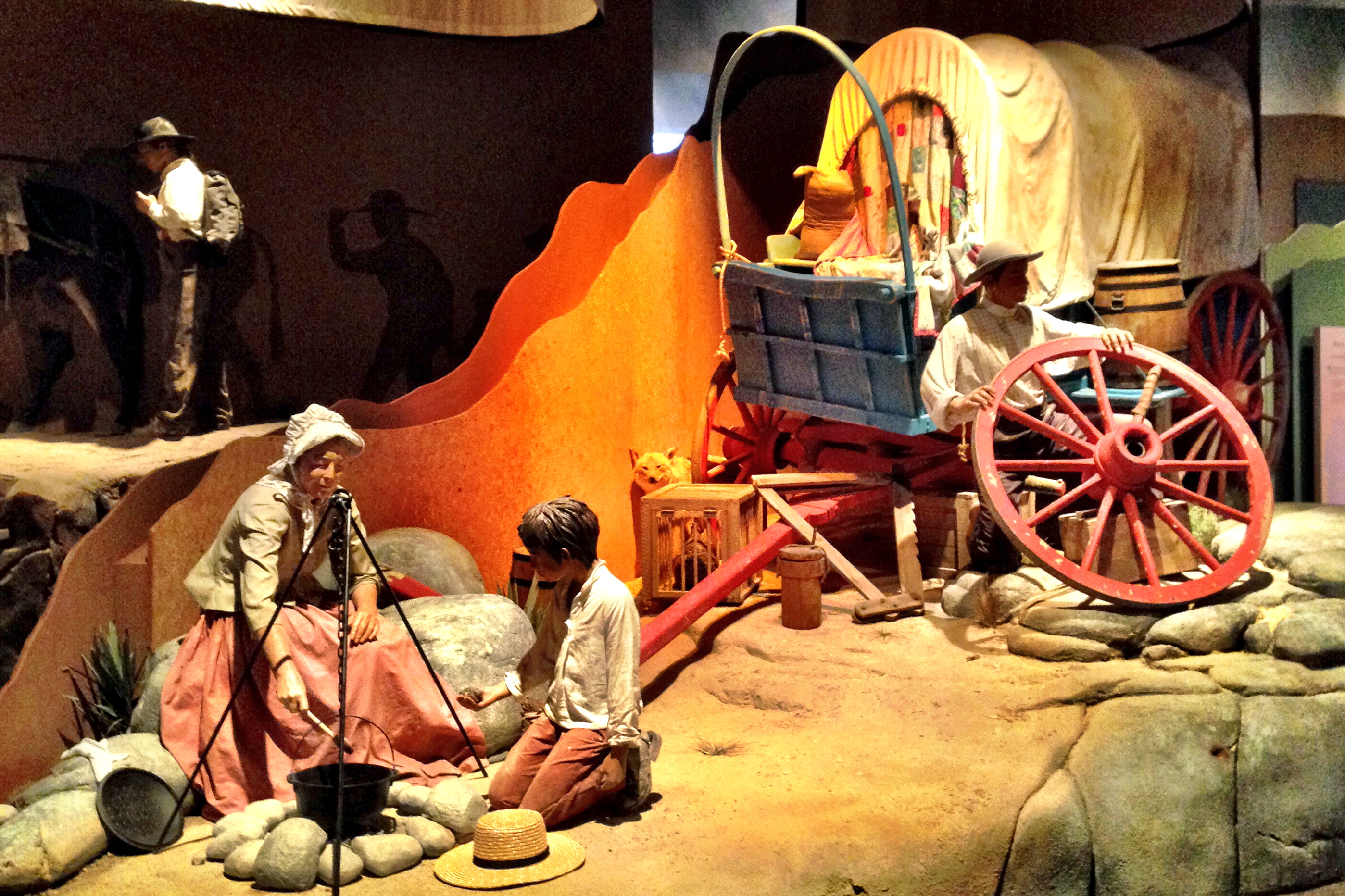 We’re following the path of the Oregon Trail. It’s a dismal, rainy day, but we’re comfortable in our climate-controlled car with fresh water and snacks within arm’s reach. What was it like for the settlers moving west in the 1850s? We stopped to find out at the National Historic Trails Interpretive Center in Casper Wyoming, a truly excellent hands-on facility, part of the US National Parks Service (worth a visit on your national park quest, Mark ).