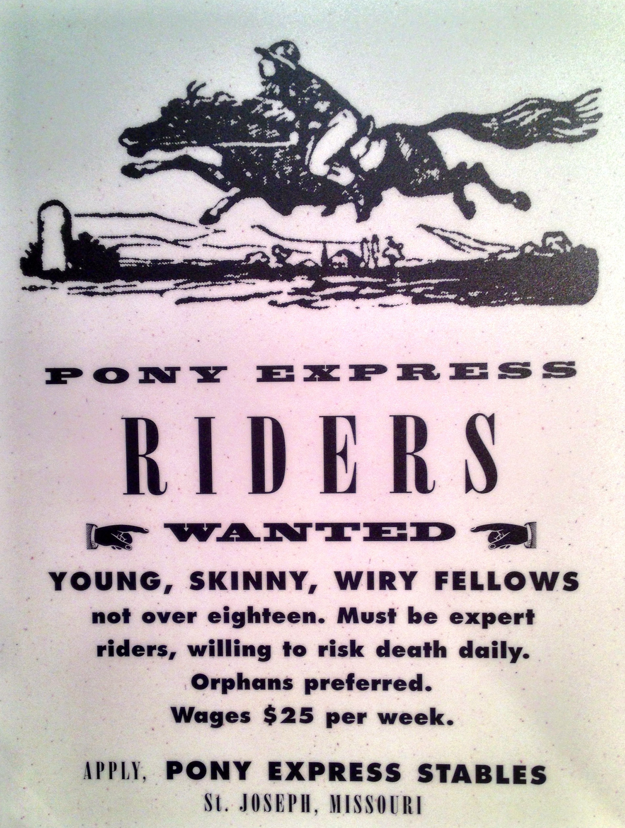And orphan boys under 18 were encouraged to join the Pony Express. Chris calculated this as $675 a week in today’s currency, but with fairly high risk…of death!