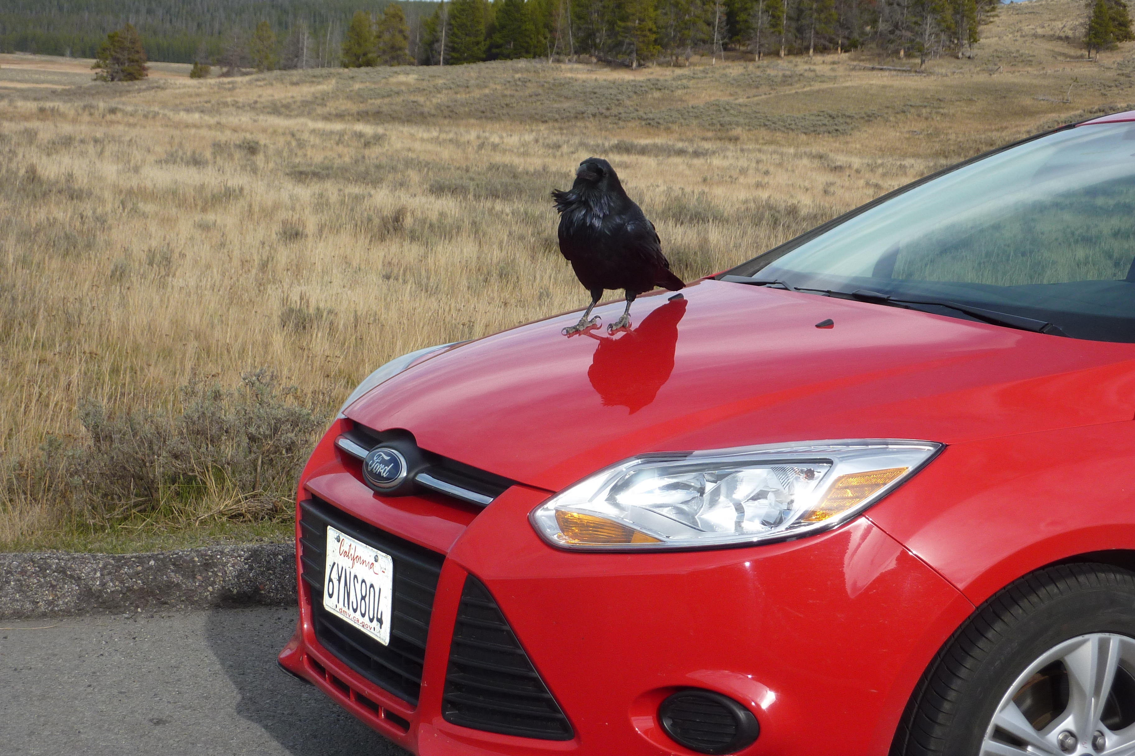 And a personal favorite, this black carrion bird perched on a car near the grizzly sighting. We think this pair of birds were just waiting for the bear to attack and devour the car’s owners. Then the birds would pick their bones clean.