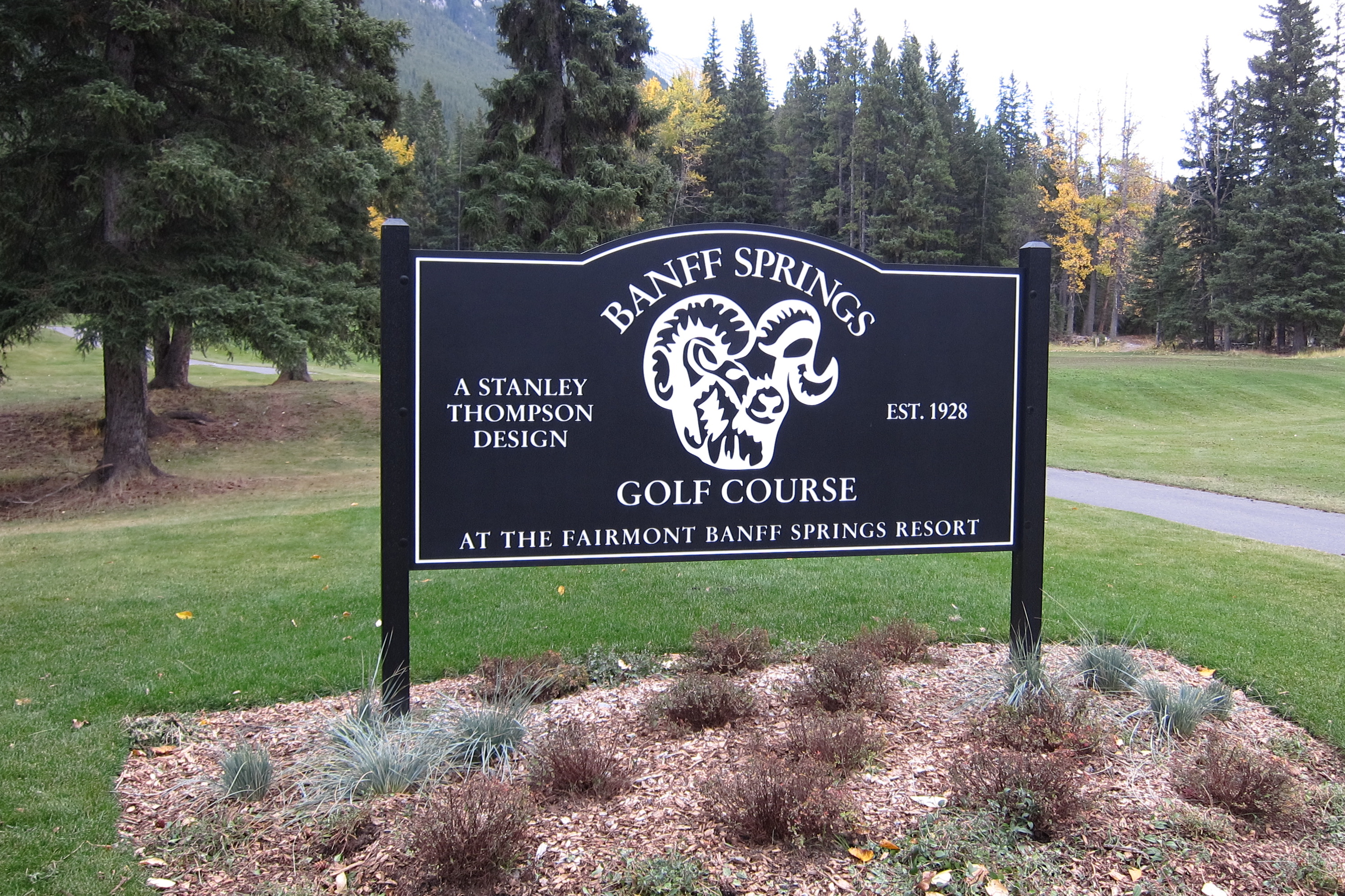 Beautiful first tee of the Banff Springs course with the Canadian Rockies in the distance on October 11.
