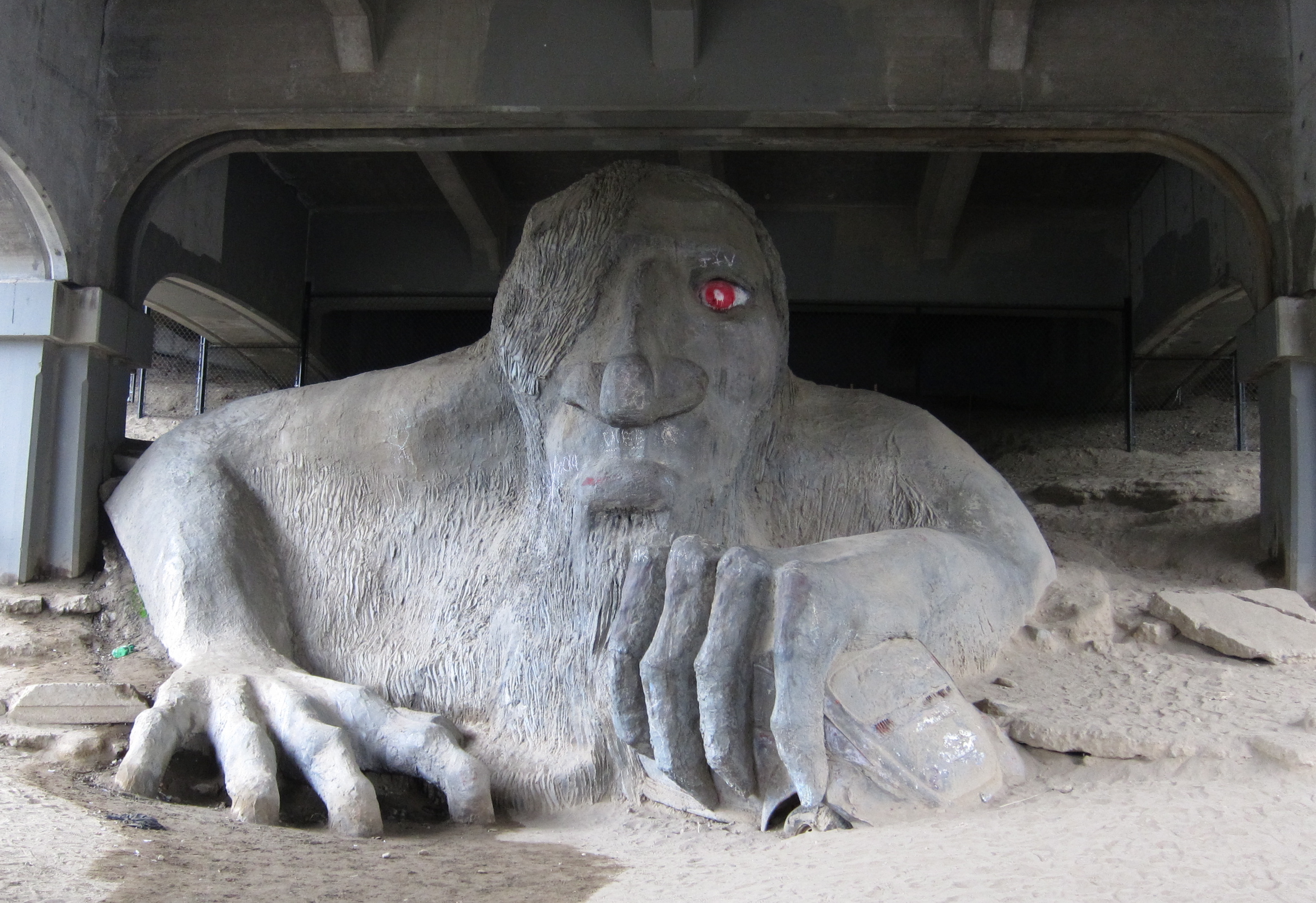 Theo is in Fremont, near the Fremont Troll, an art (?) project under the Aurora Avenue Overpass. Built in 1989 it’s the same age as our niece Meghan, but Meghan is holding up a lot better! (Happy Birthday, Meghan!)