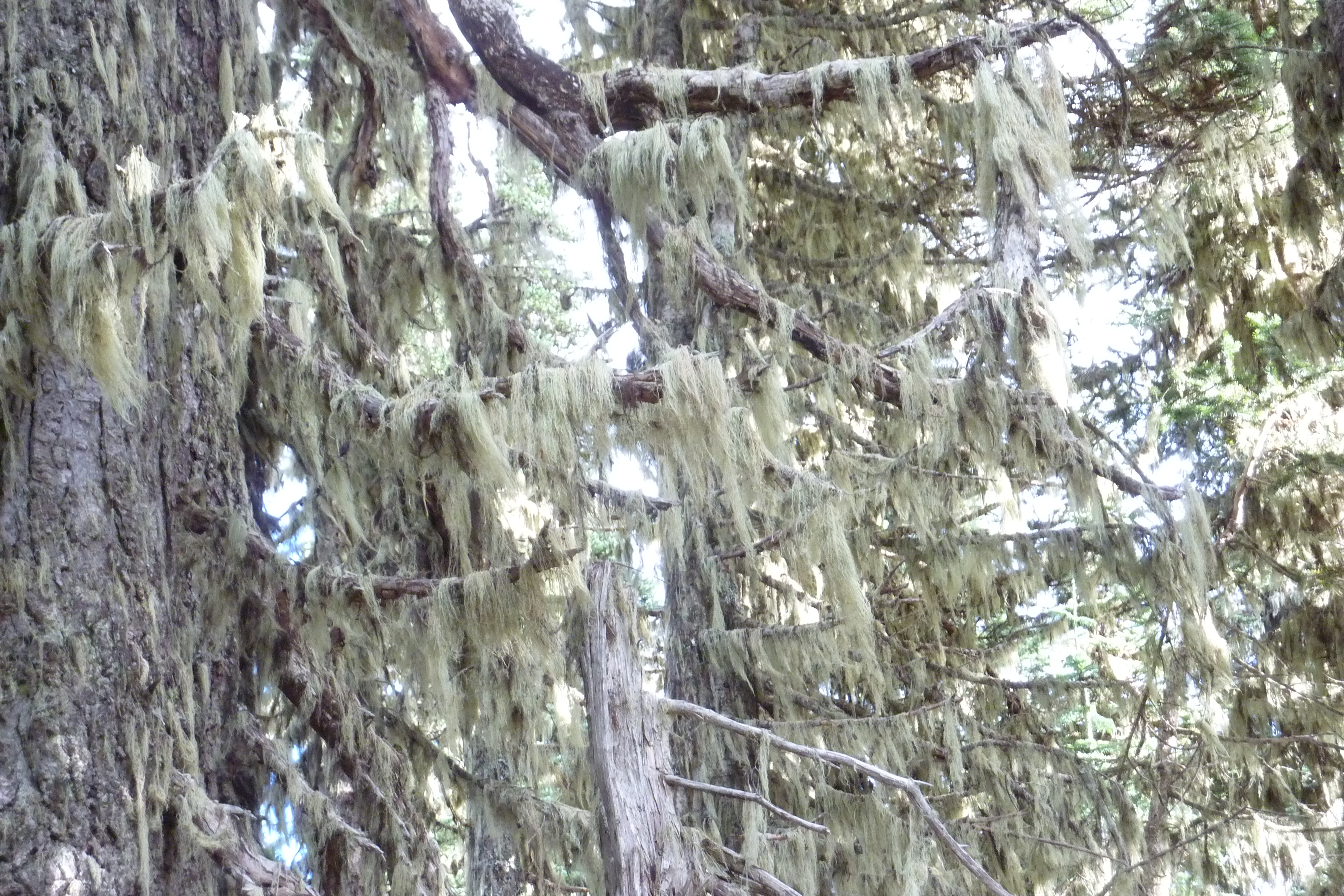 From nature guide P. M. Fogg (1925): “By reason of the fact that the growth is found on dead or dying trees, as well as on those that are alive, many casual observers wrongly assume that it alone is responsible for the death of the trees. The lichen does not however derive nourishment from the timber, and will flourish as well on a stick. It is an air plant, and perhaps prefers dead wood, or trees that have been attacked by insects, because on such there is less foliage to hinder its spread.”