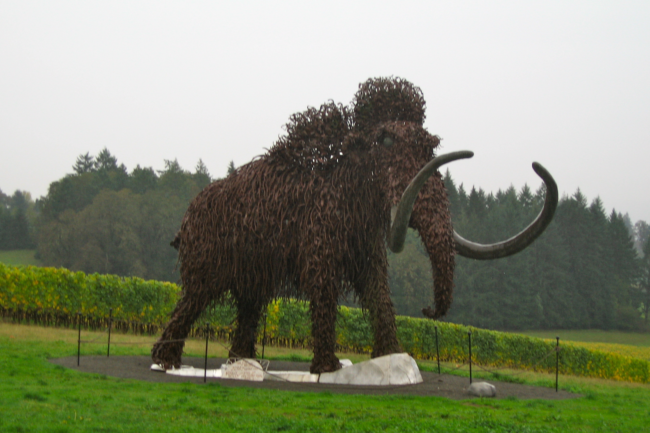 At Domaine Serene, this rusted metal woolly mammoth represents the impact the Ice Age had on the valley, making it perfect for wine production.