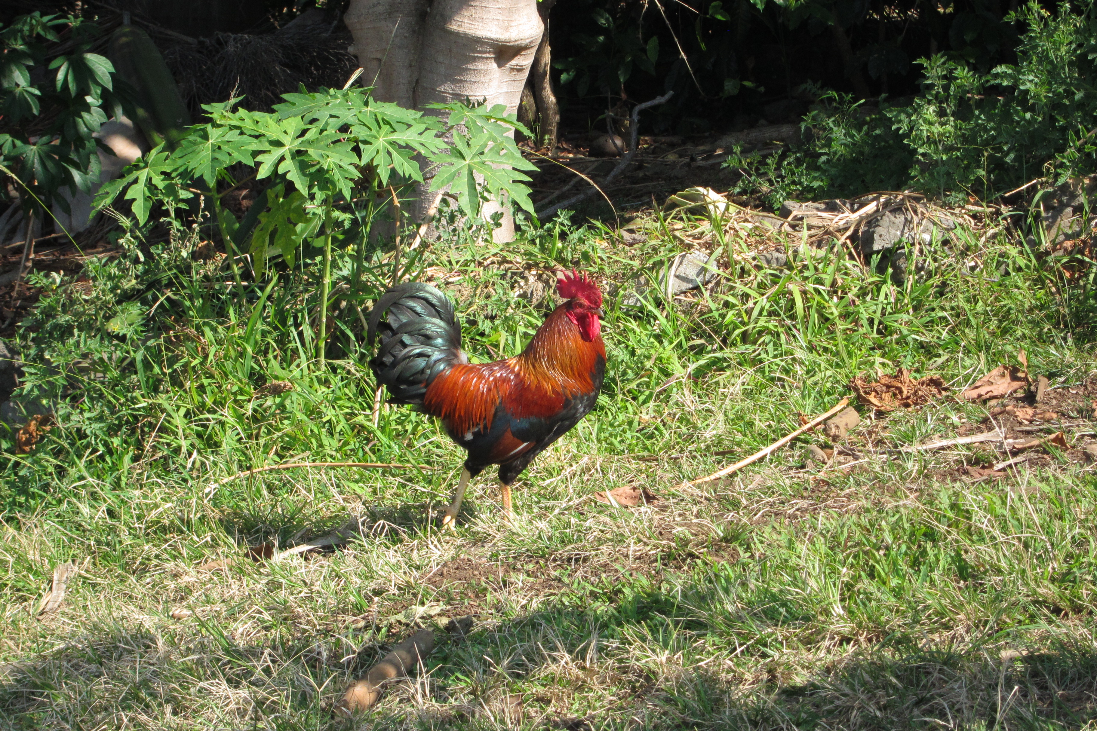 This is one of the island’s free-range chickens, known as huli huli chickens. They look so quaint strutting through the brush and they do taste great as rotisserie treats, but they also wake us up too early. The ones at our house must be on Eastern Time, crowing at 2 or 3 a.m. here. (7 a.m. in DC)