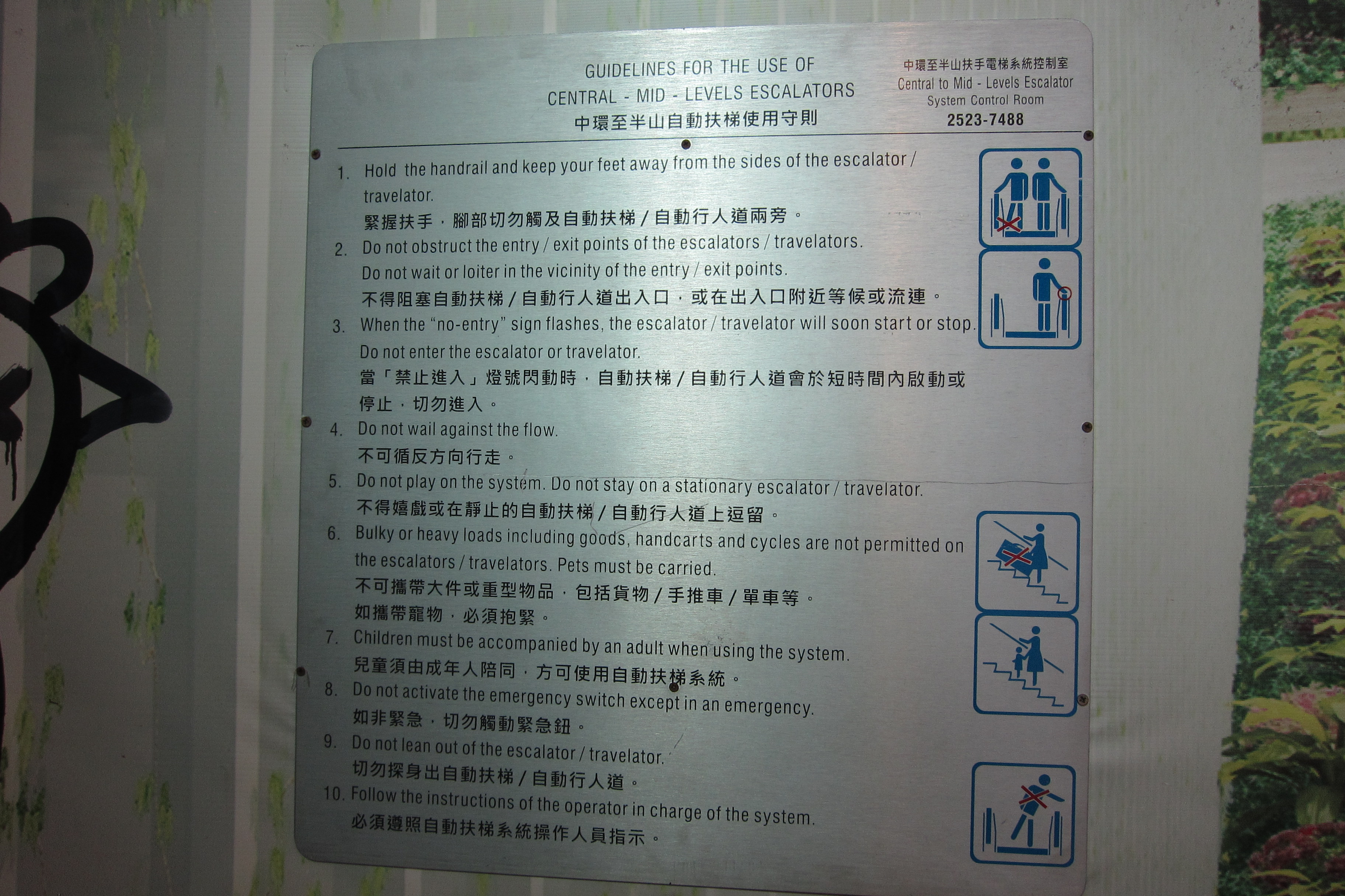 We used the “travelator” a lot on this trip since we stayed in Midlevels. This is a one-way system that is part moving-walkway and part escalator. It extends from the commercial areas of Central up, up, up to the residential high-rises (and bars). It runs downhill until 10a.m. and then after a 20-minute changeover it runs uphill. This was great for us to use to get to our apartment at the end of a long day.