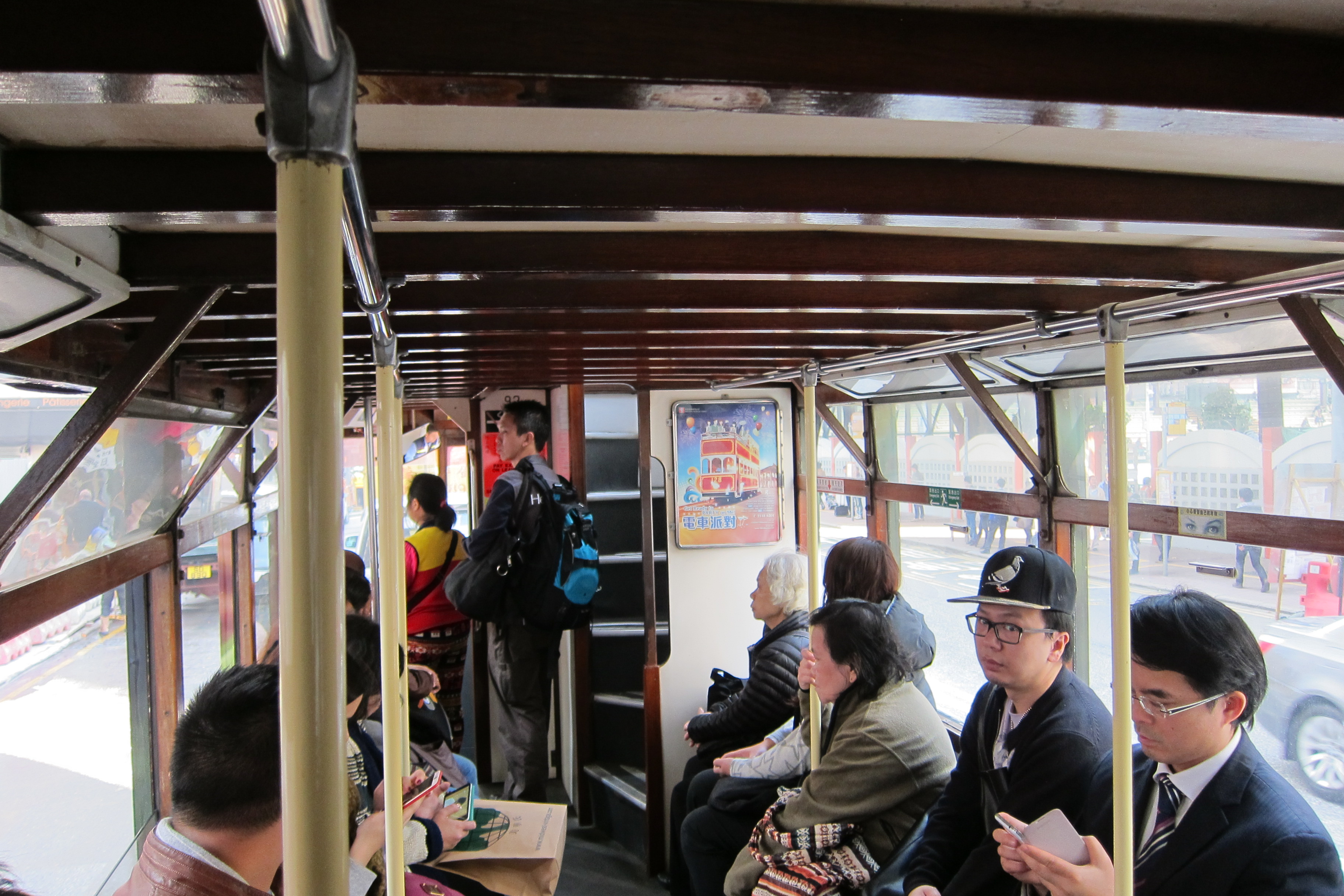 The second cheapest way to get around the island of Hong Kong is the tram, only $2.30 HK (about 30 cents US!). It travels east-west along the northern part of the island. Parts of this were once the shoreline along the harbor before land reclamation moved the shore out into the harbor…multiple times. Click on the video to take a short ride on the upper deck of a tram.