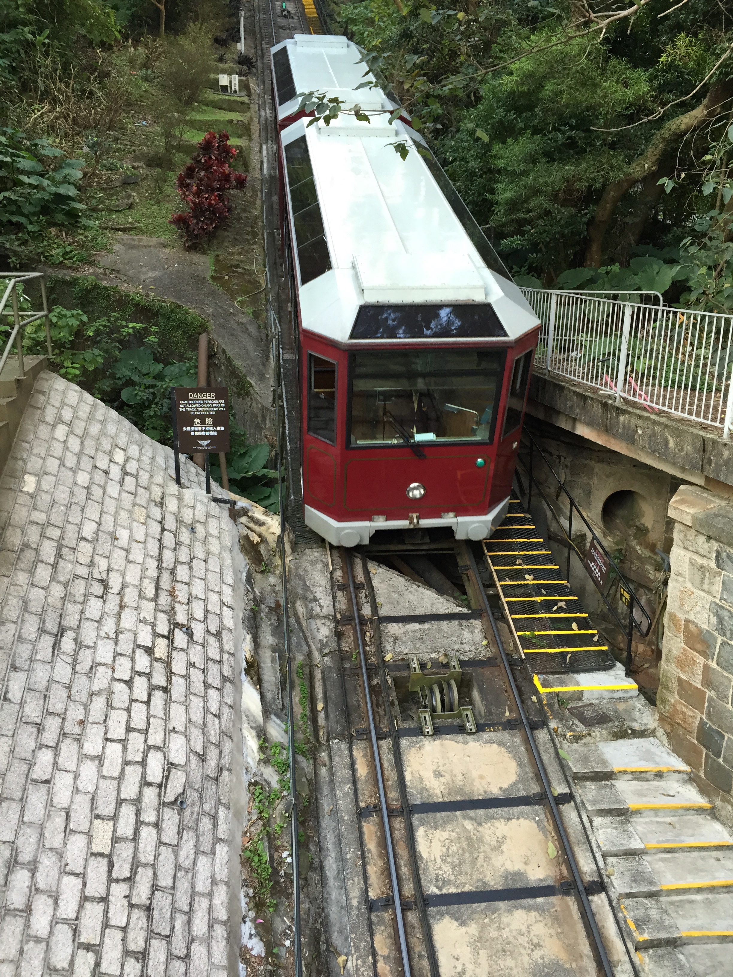 For up/down travels, there is also the Peak Tram, a funicular train with just one route, up and down between Central and Victoria Peak. It has an incline of about 45 degrees. When we faced a crowd of a thousand or more at the Peak waiting for the 150-seat-capacity ride down, we walked the zig-zag Old Peak Road down instead. Even with all its traverses, it would probably still have been a blue (intermediate) ski run, pretty steep and very narrow.