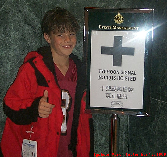 Level 10 means a major hurricane is coming. No school. Chris is thrilled. The building did sway in the wind.