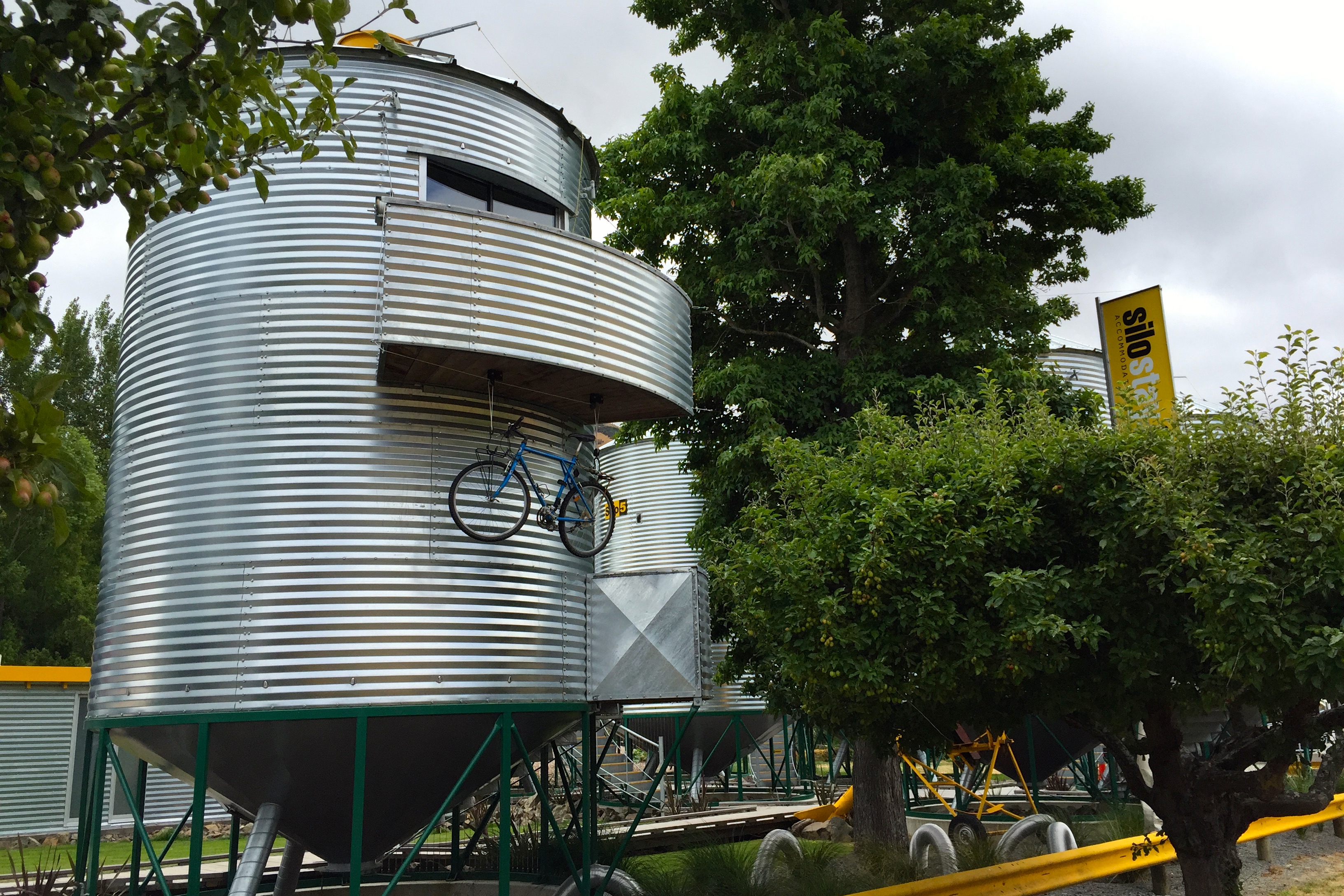 We saw this unique accommodation on the way: grain silos utilized as motel space, complete with bicycle storage.