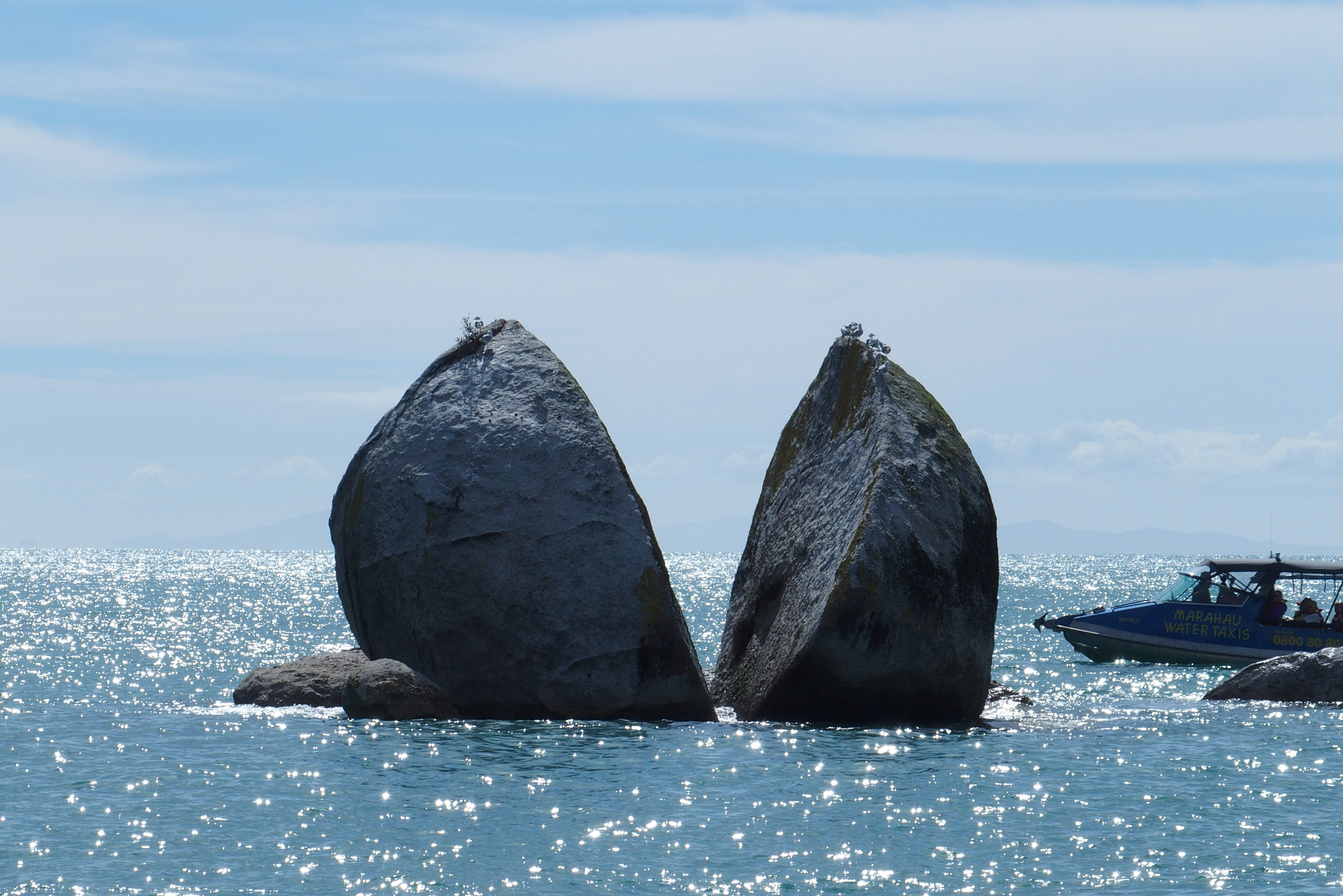 One notable spot along the ferry ride is Split Apple Rock, a giant granite boulder that has broken in half.