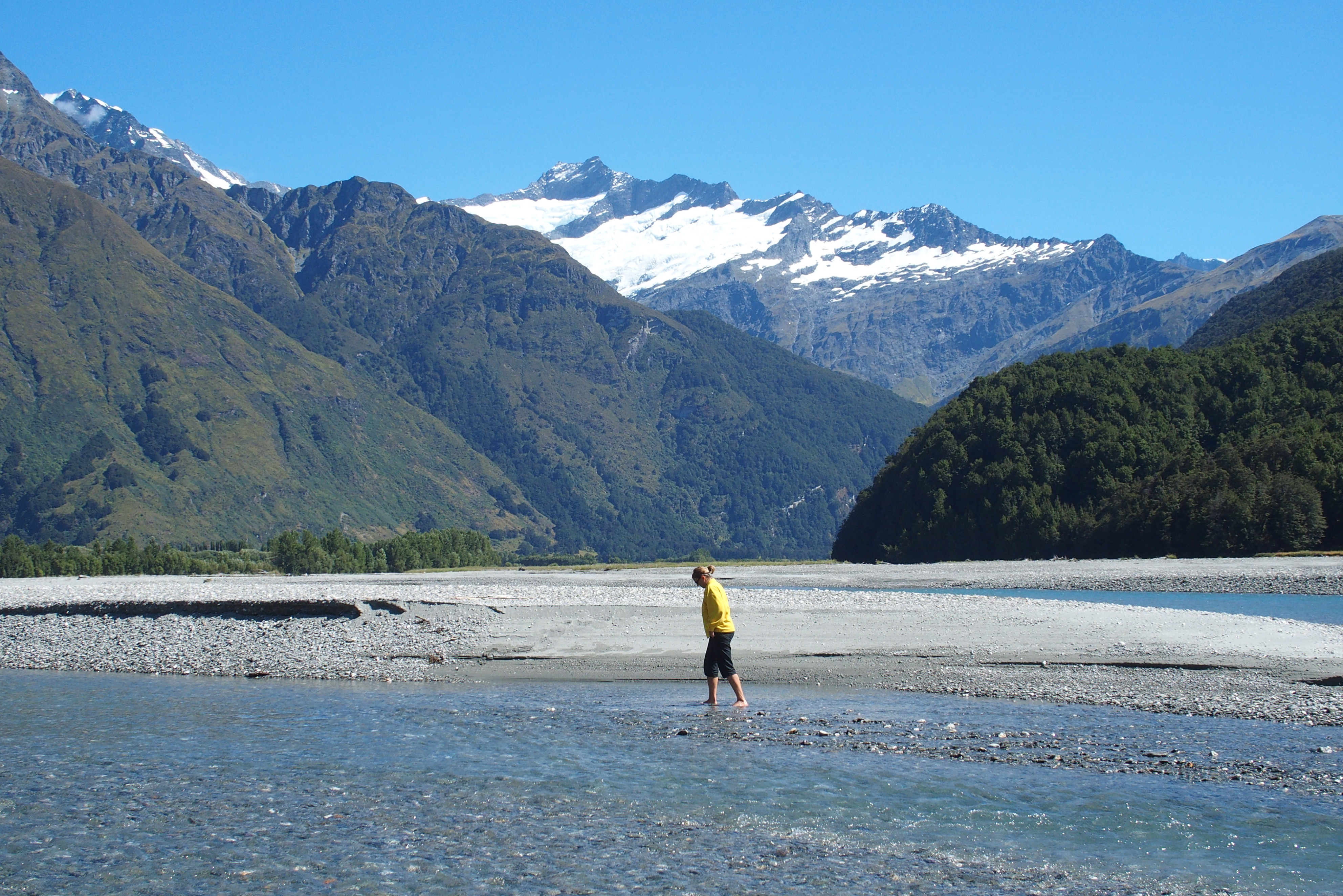 Matukituki River, wide and shallow.