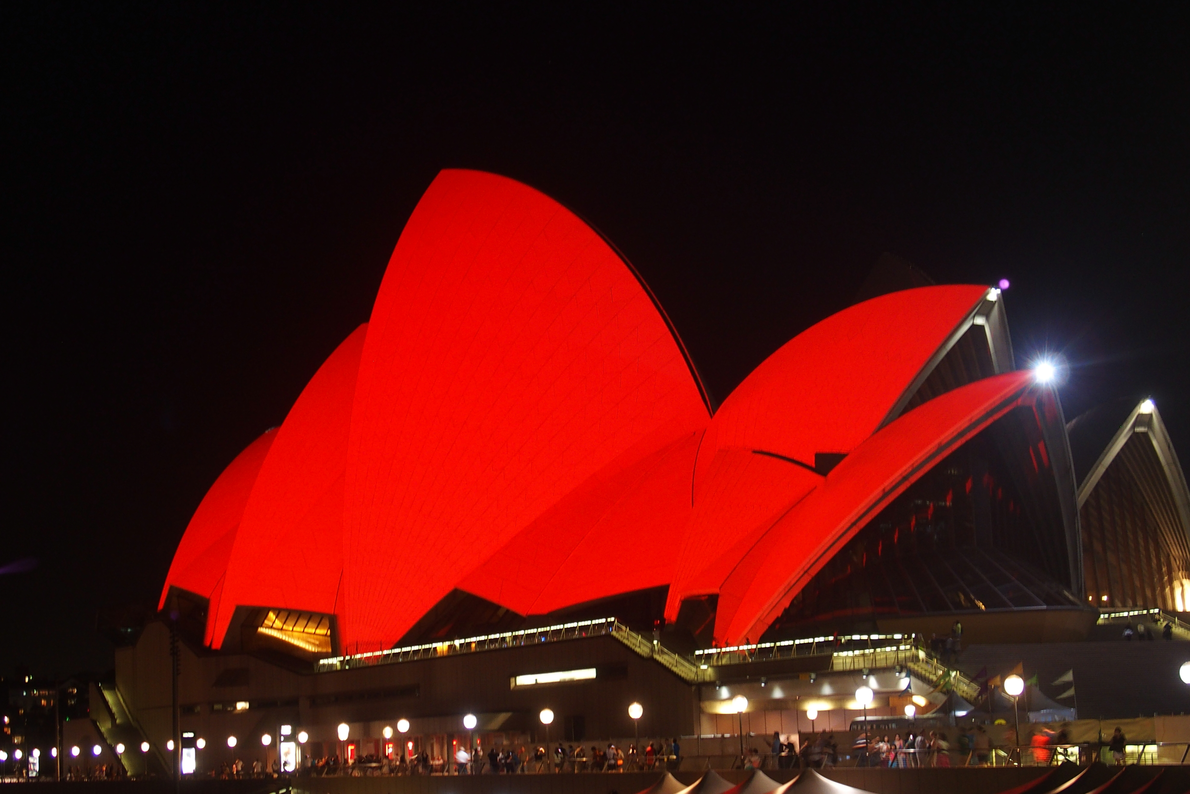 In China, red is a very lucky color, visible everywhere for Chinese New Year. So this is now the Sydney Chinese Opera House.