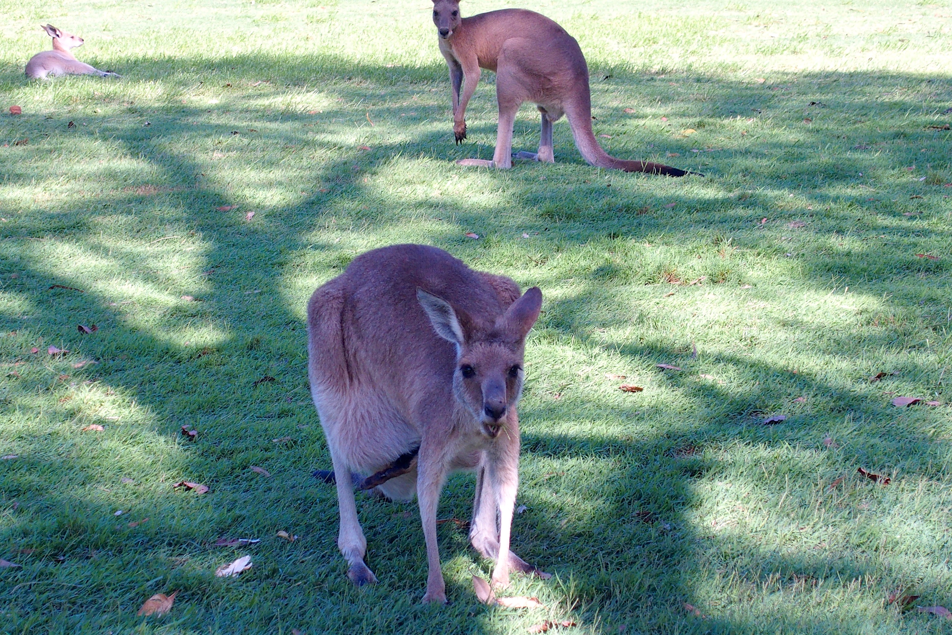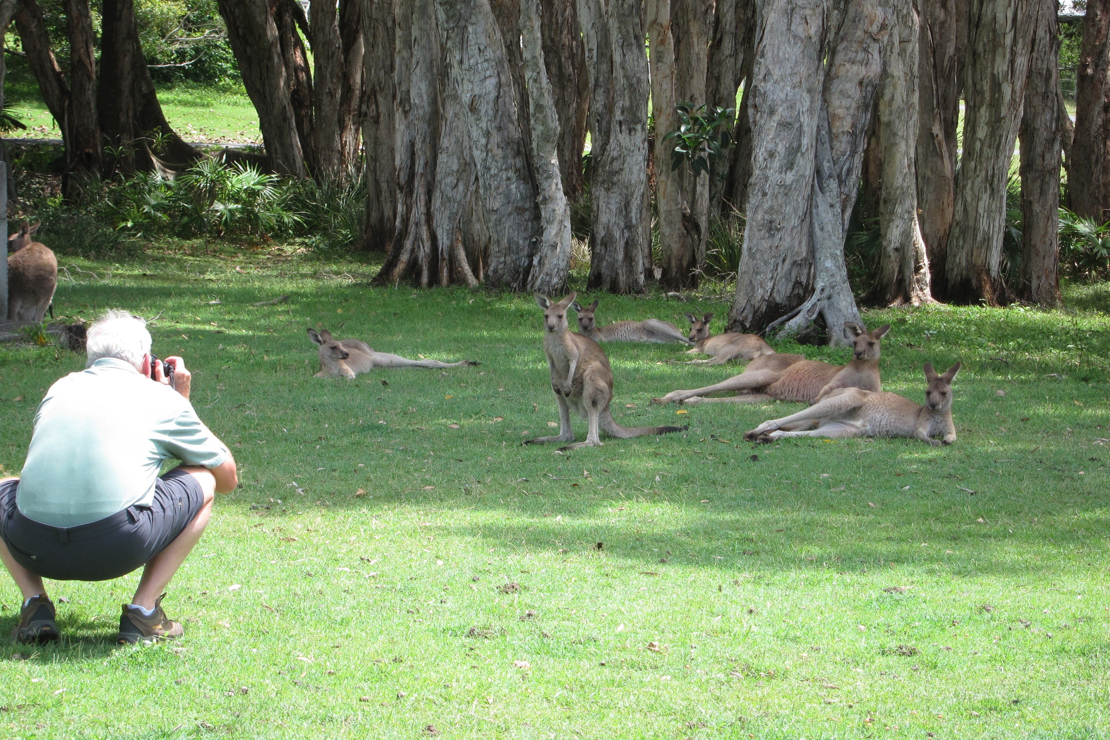 As we got closer and closer to the roos, our local nature lady approached us to provide some helpful advice. It turns out that kangaroos will attack when they think they’re threatened and Michael was getting too close for comfort. The kangaroos have short, skinny front legs—not too dangerous-looking—in fact, they look like atrophied limbs. But their hind legs are powerful, thick, strong, and sharp-clawed. The amazing thing is that when fighting, the kangaroos can lean back on its heavy tail and use its hind legs to strike out. With the strong limbs and sharp nails, they can maul attackers or pseudo-attackers, sometimes with fatal outcomes. OK, we’ll back off.