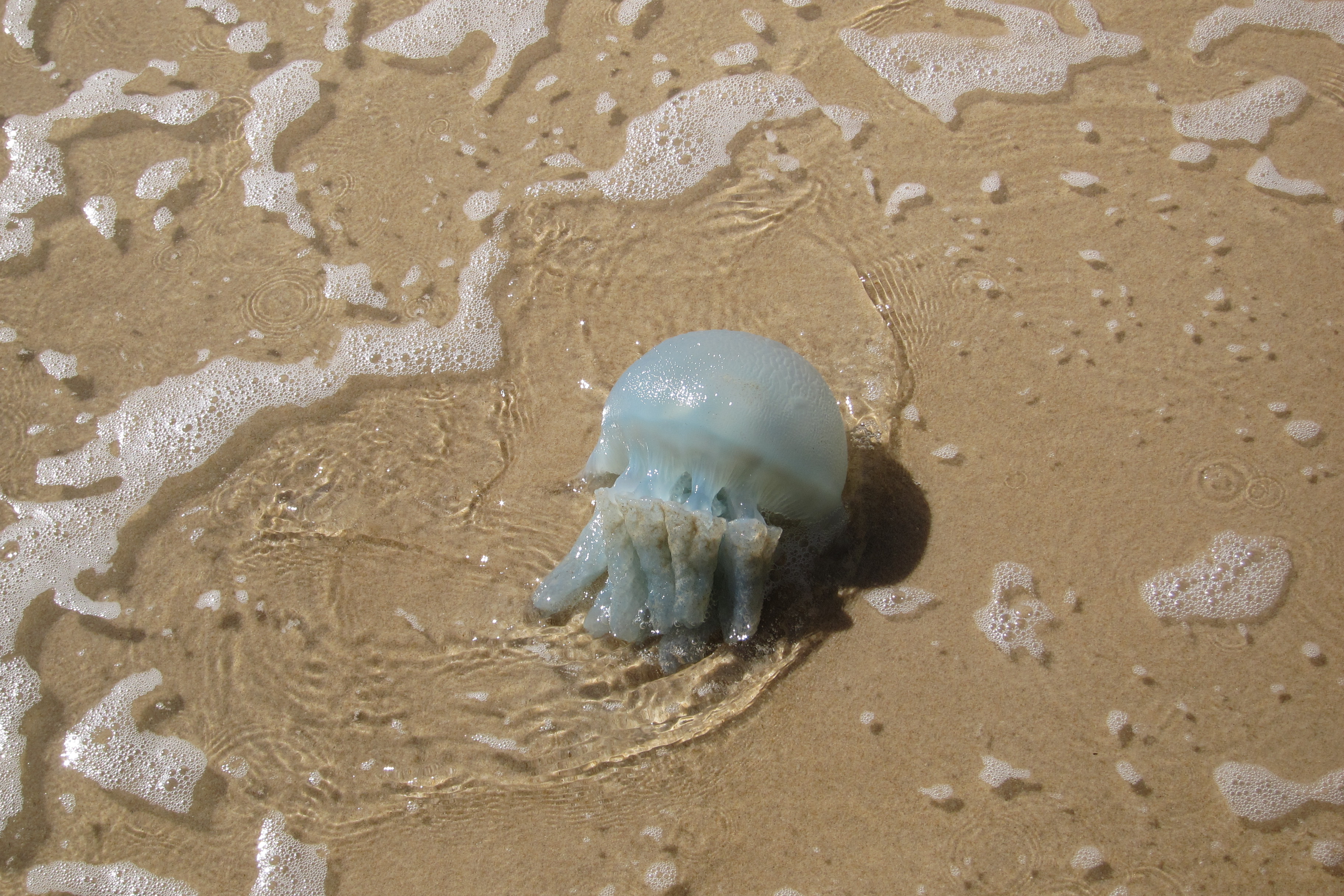 Australia has some of the most poisonous creatures on the planet. Here on the beach of Alexandria Bay we saw two naked men and two naked ladies (not that they’re poisonous, just distracting) and two large jellyfish. This one is six inches in diameter, not as dangerous as the bluebottles we saw earlier. Check out this video of a giant swarm of jellyfish on the Gold Coast earlier this year.