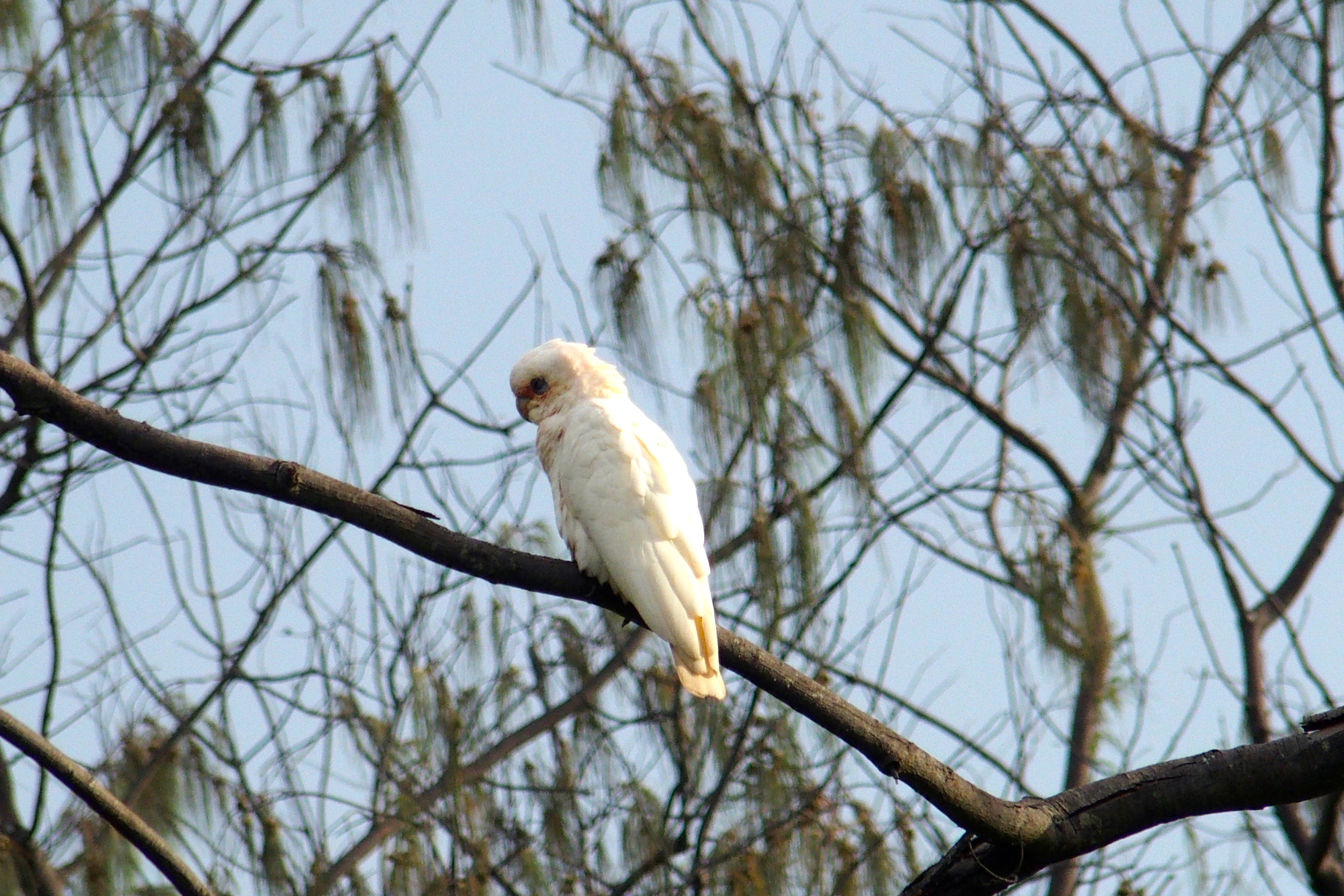 Not as colorful, but much louder, are the screeching, swooping little corellas. They look a lot like sulphur-crested cockatoos, but don’t have the yellow crown.