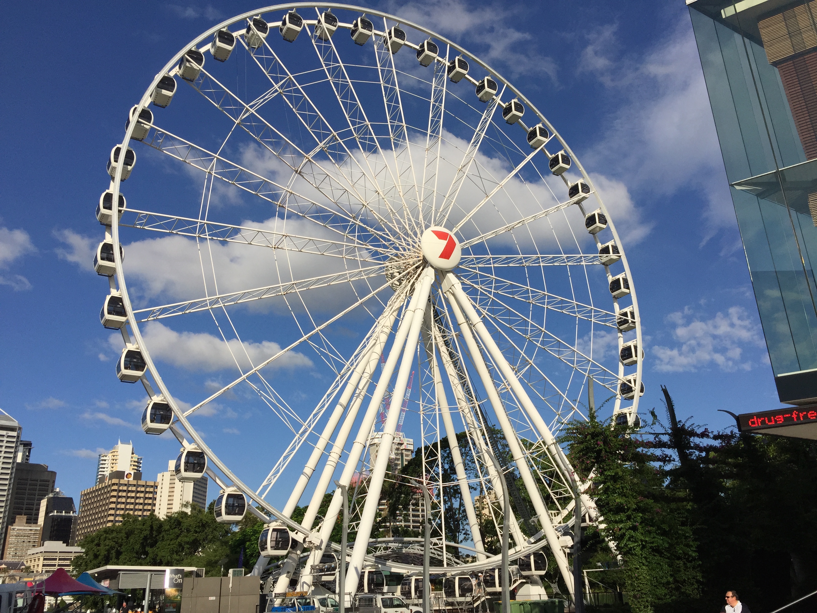 We were looking forward to seeing Brisbane for several reasons. We’ve been to eastern Australia’s top and bottom before, but never the middle. It’s a glorious city built on the Brisbane River, with bridge crossings providing access to parks and shopping areas.