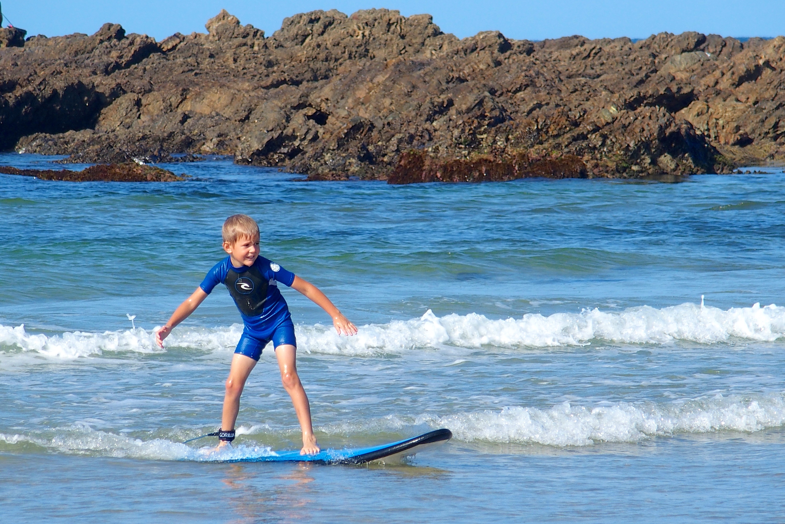 We found out Australian schools have four sessions a year with long breaks between them, but no three-month summer vacation as in the US. So in the summer months of February and March in New South Wales and Queensland, beaches are filled with groups of schoolkids. They’re here for PE class to learn surfing.