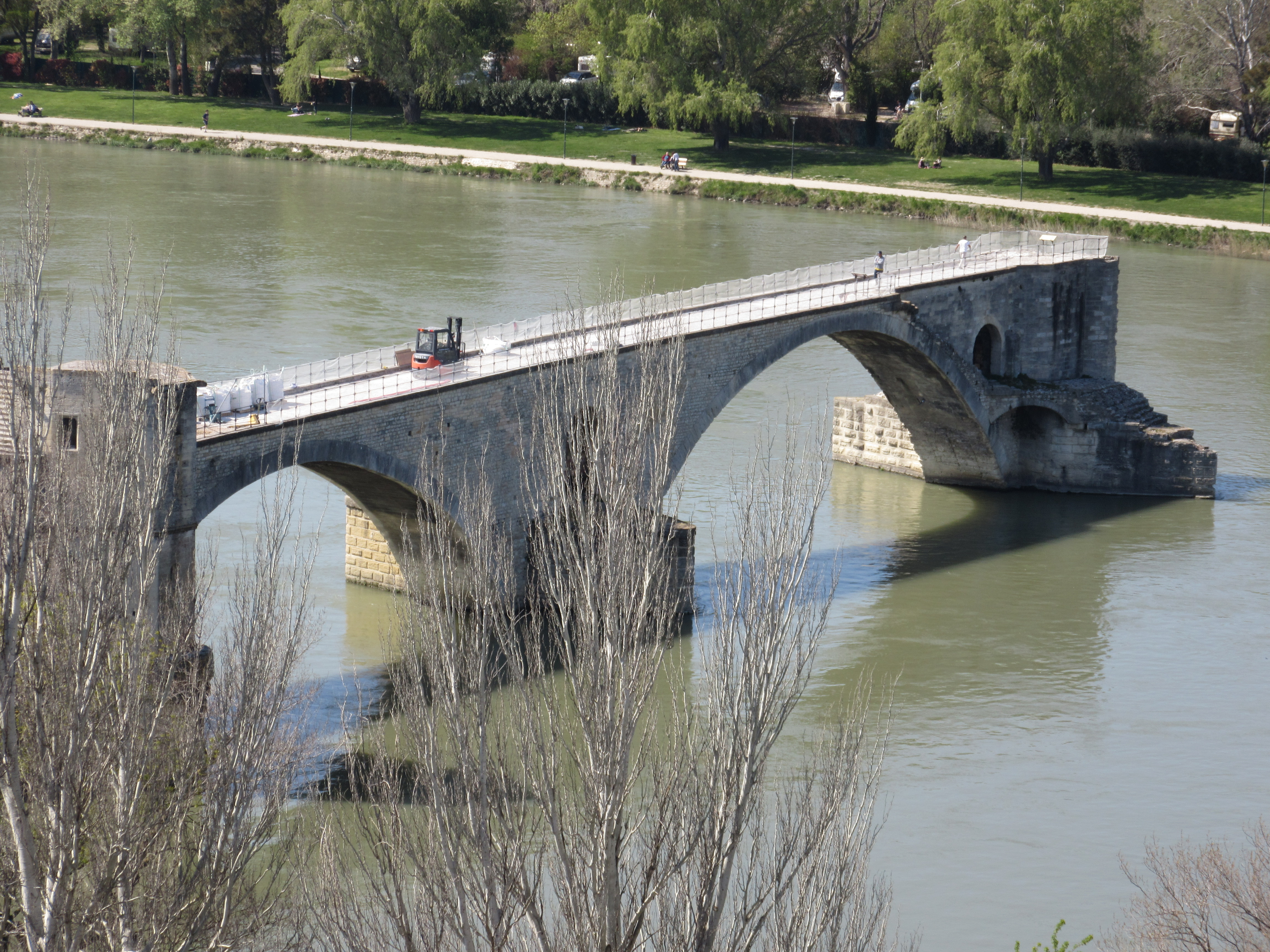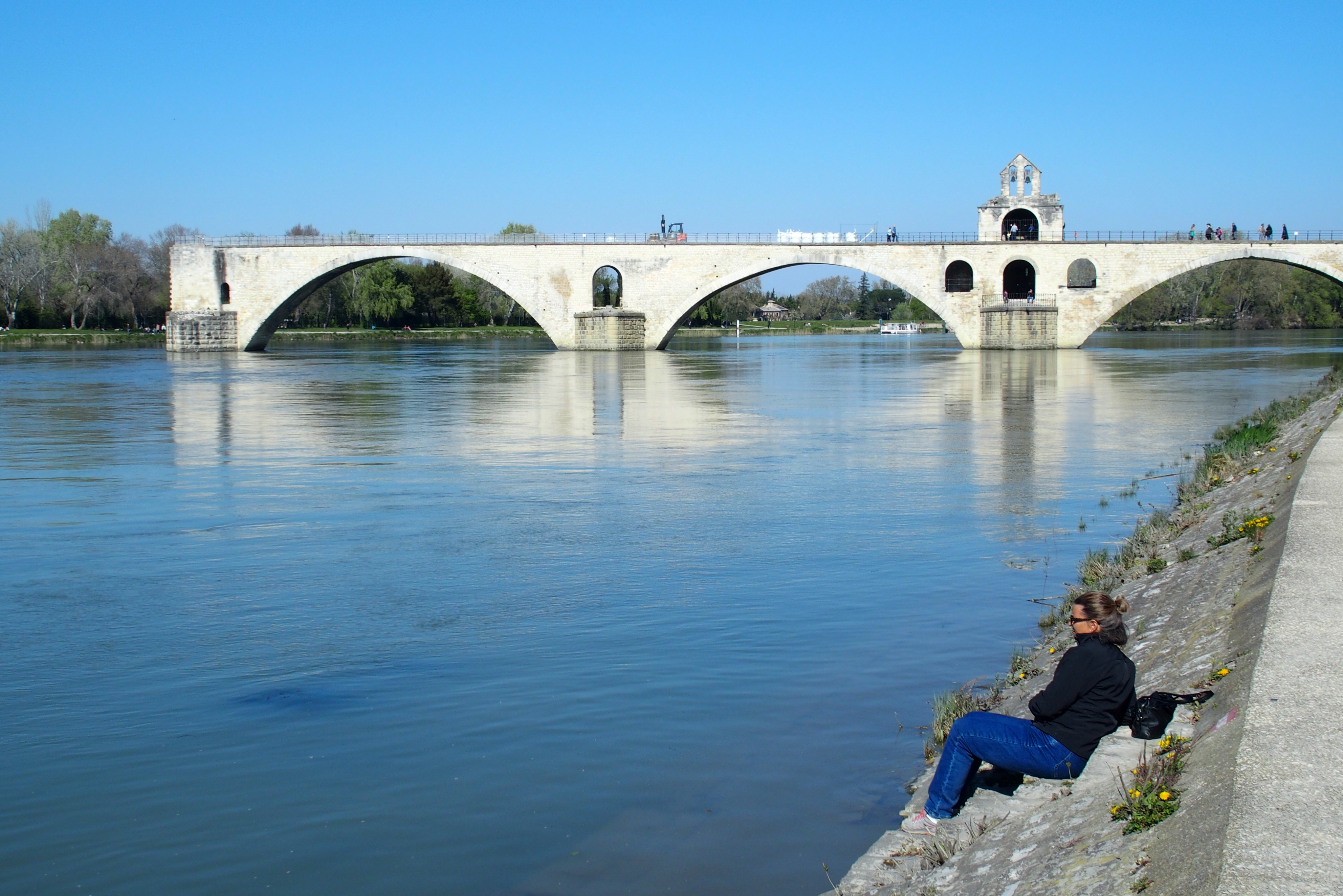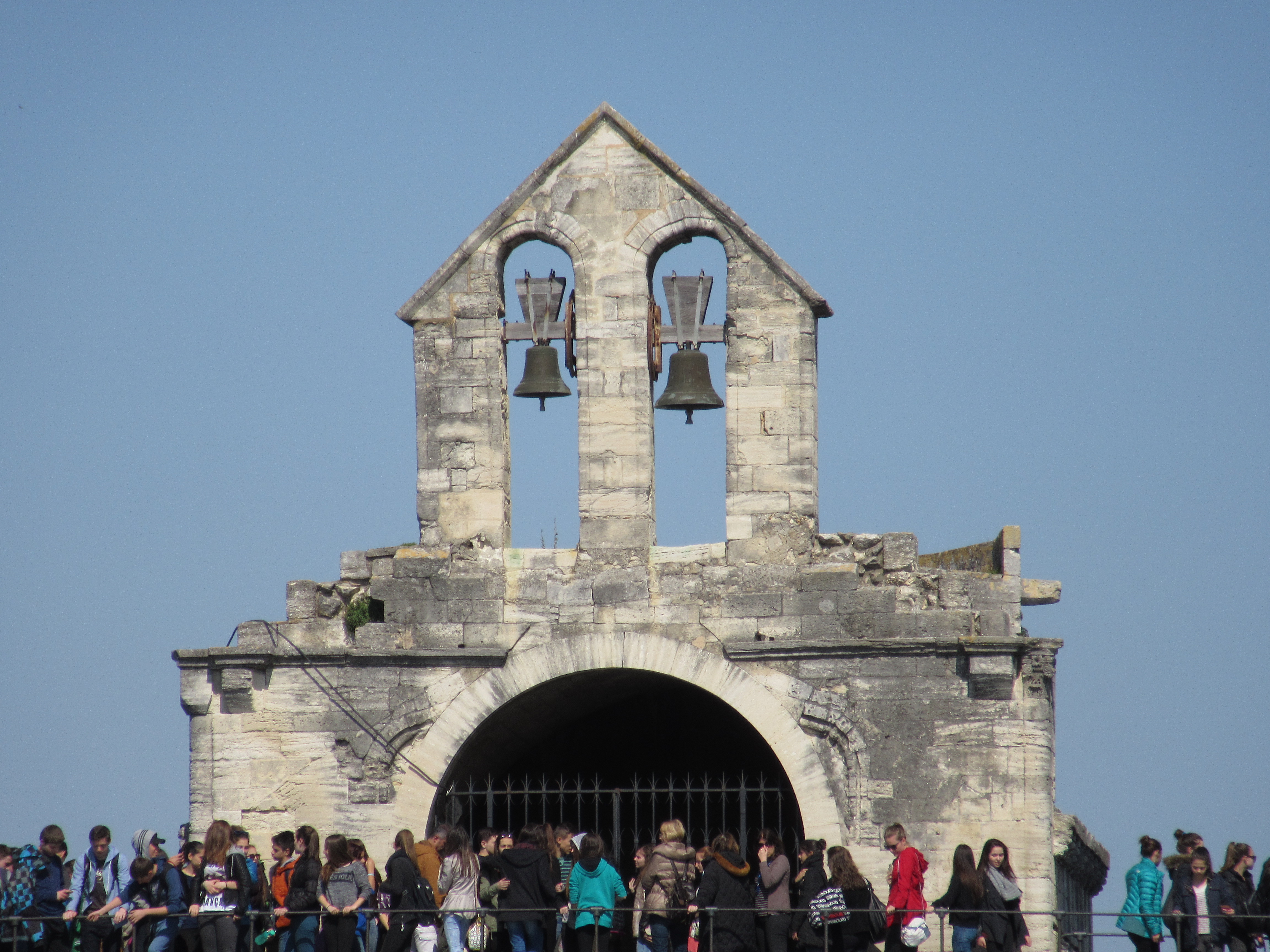From the garden near the palace is a perfect view of the Pont d’Avignon or Pont Saint-Bénézet. The story of this bridge is that a young shepherd, Bénézet, received instructions from Christ to build a bridge across the Rhone River. The original bridge was completed in the late 12th century. Bénézet was granted sainthood for performing not three, but eighteen miracles, one of which being the lifting of the first very heavy stone to start the building of the bridge. The bridge was rebuilt once after flooding destroyed parts of its 22 arches. When it was partially destroyed again, the western side was abandoned.
