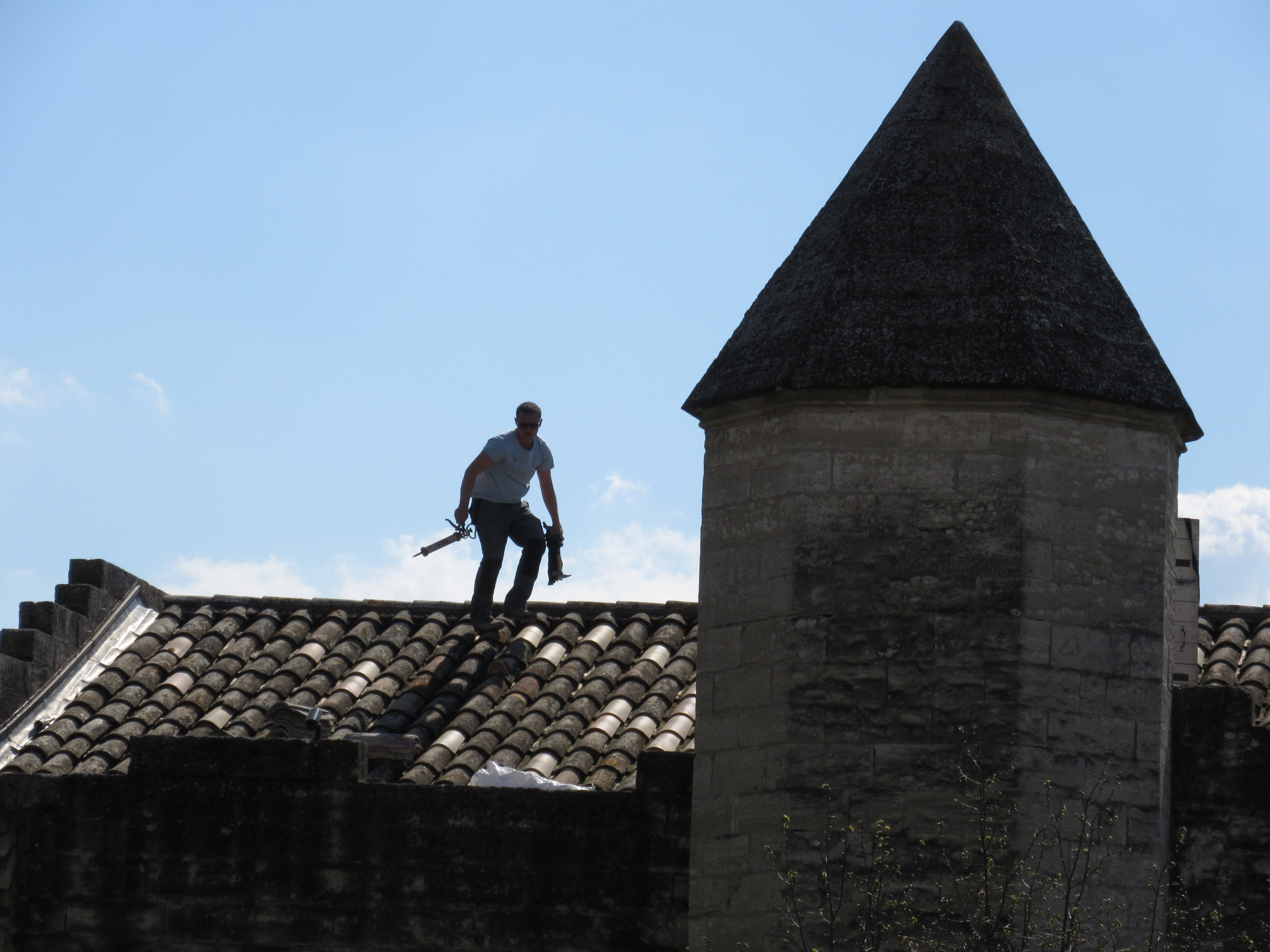 An interesting juxtaposition of a gargoyle on the papal palace and the Holy Mary on the cathedral bell tower just beyond.
