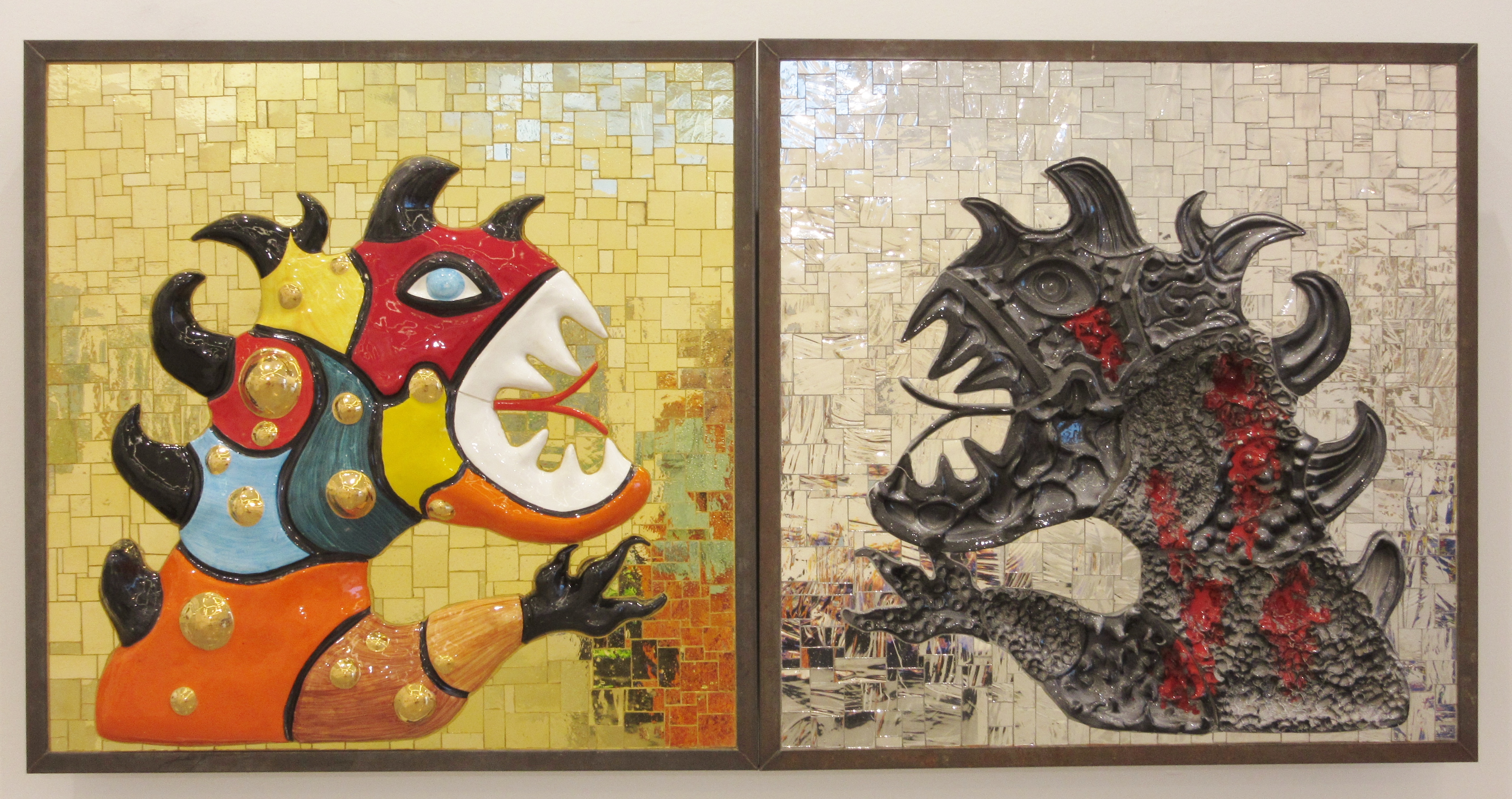 We were already familiar with Niki de Saint Phalle’s work. Her Firebird (L’Oiseau de Feu sur l’Arche) is a giant mirrored piece that has been in front of the Bechtler Museum in Charlotte, North Carolina since 2009. About 60 pieces of her enchantingly colorful art were exhibited there several years ago.