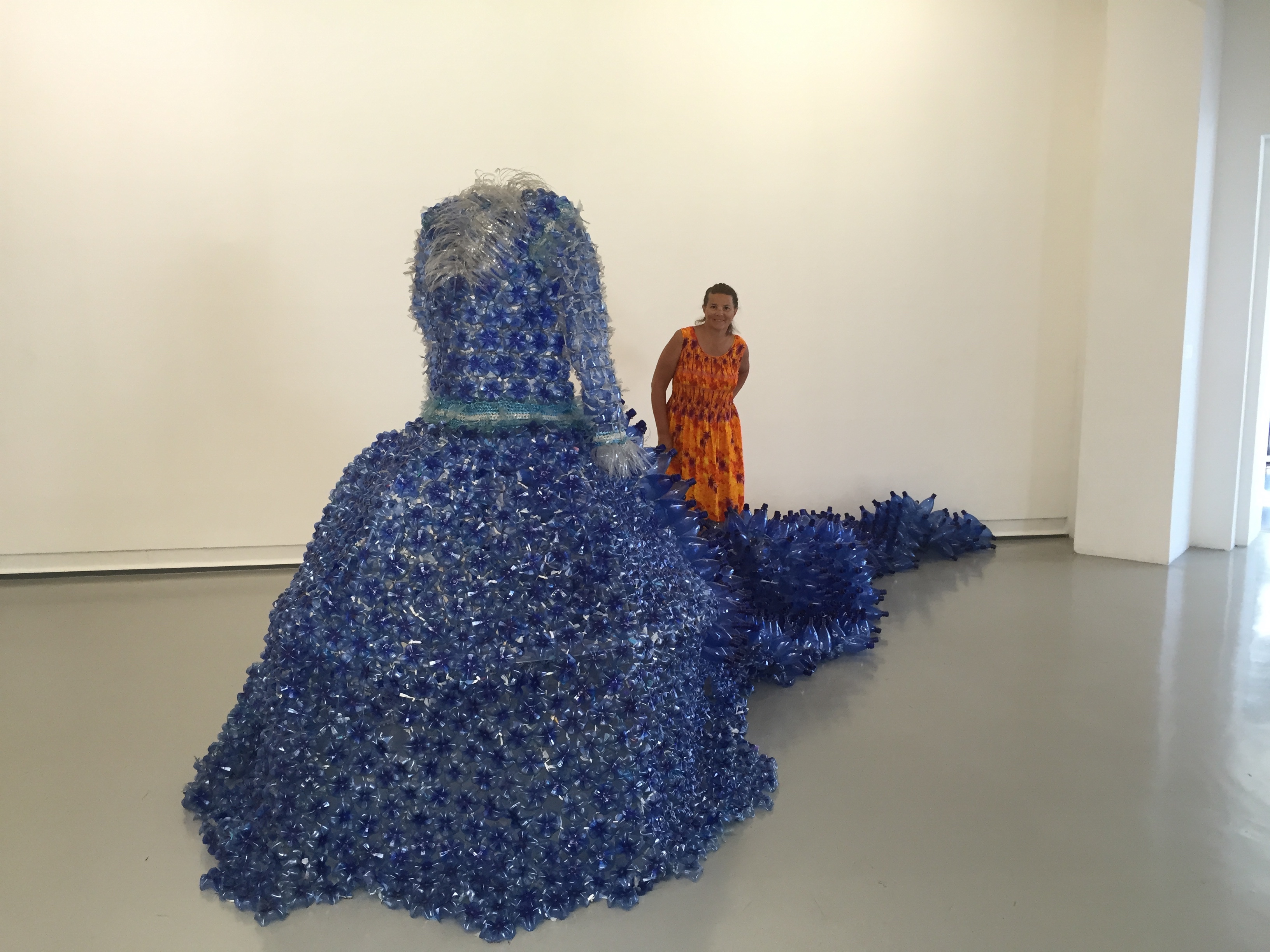 The ultimate recycling project, Vestito Blu, a blue dress and train made from plastic bottles by Enrica Borghi.