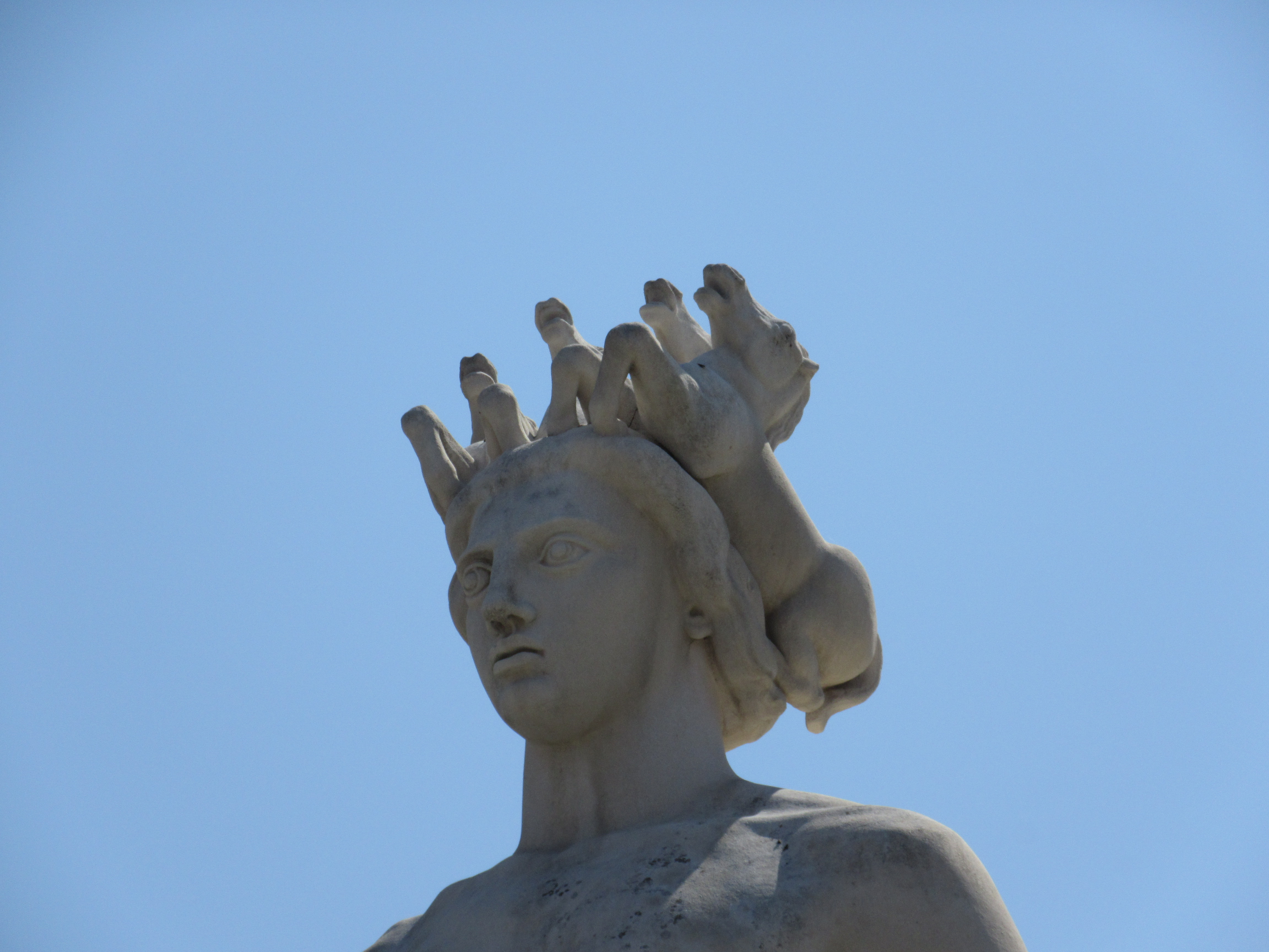 The large naked Apollo was removed from the square for many years for “moral disruption” and just returned in 2007. We wondered why he wore a crown.