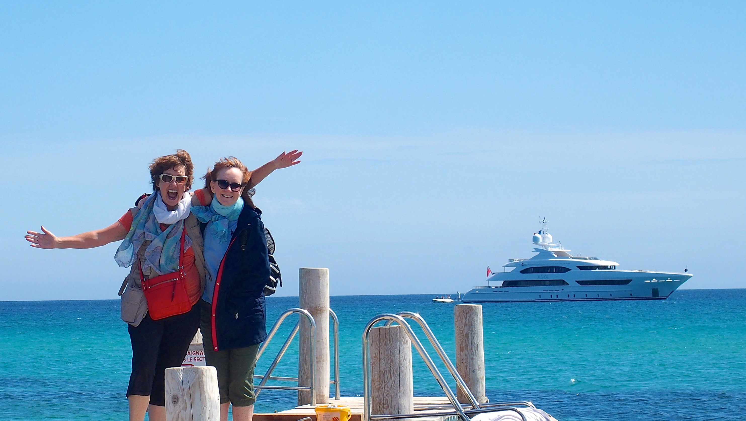 It’s Kathy and Lynn! They have arrived again. This time a smaller yacht has brought them to the restaurant.