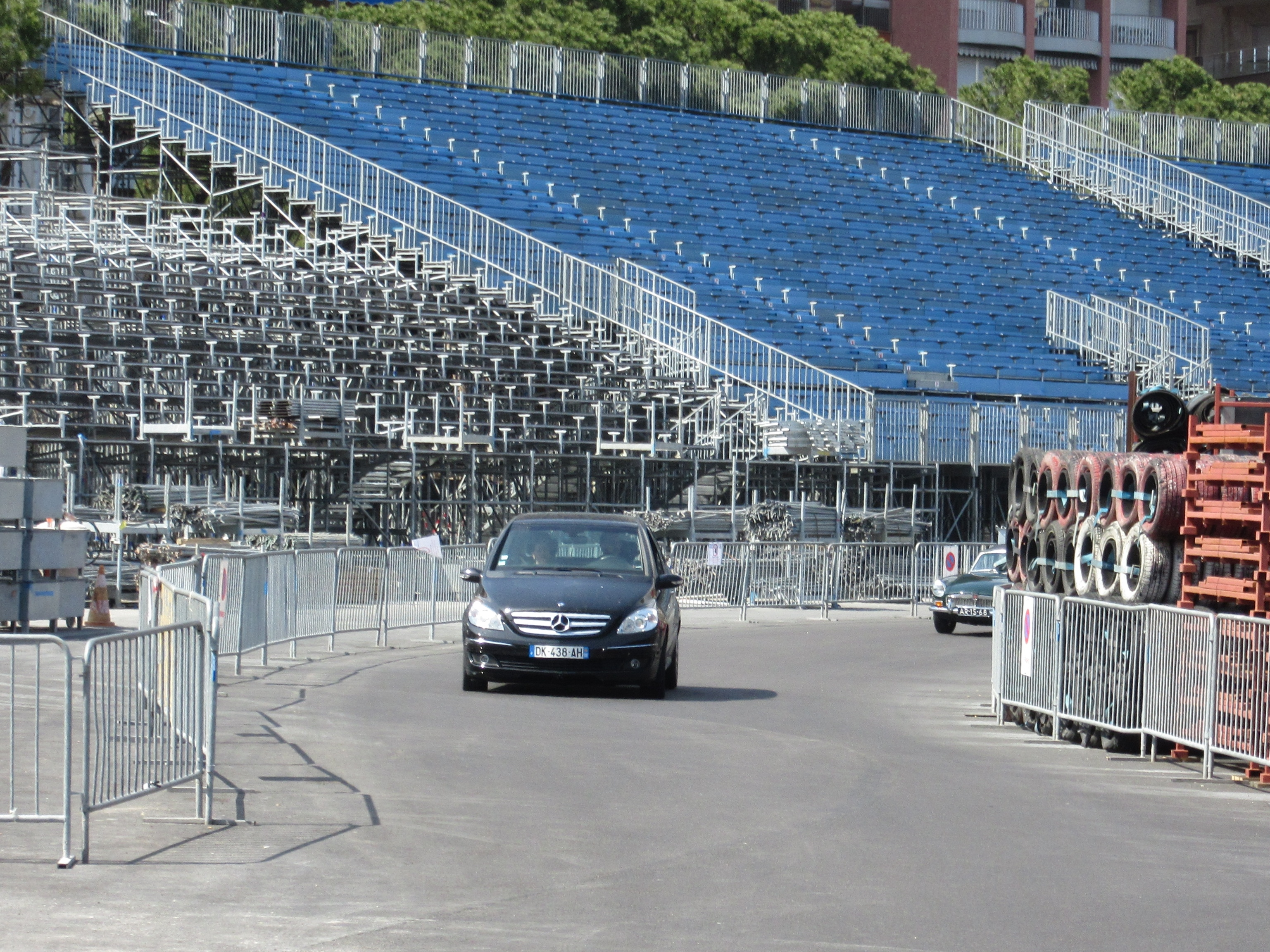 Monaco is already setting up for the big Grand Prix Formula One car race in late May. The course runs right through the town, with hairpin turns on narrow European streets.