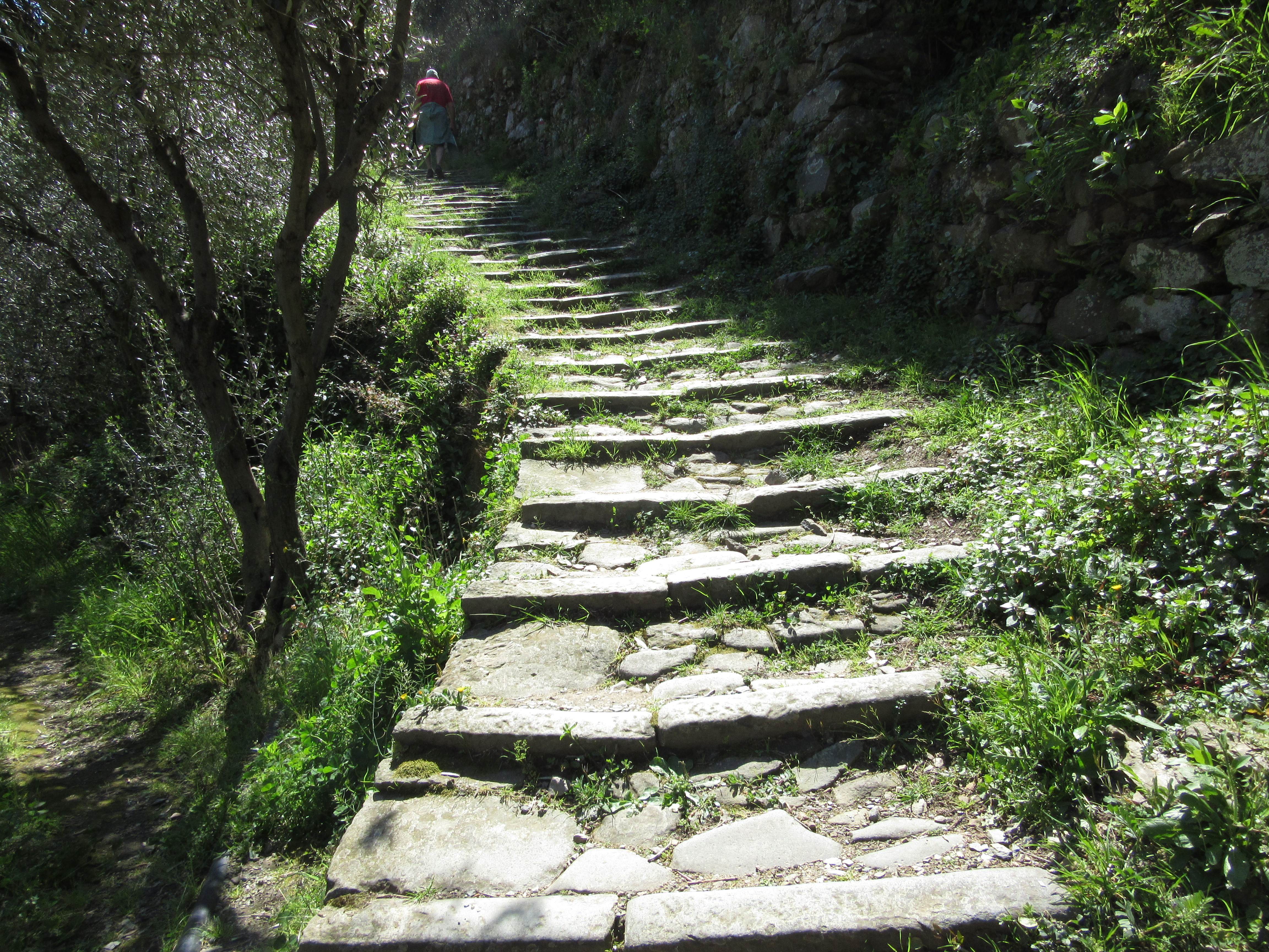There is a bus up from the coastal town of Manarola to the hiking level high on the cliff at Volastra, but we decided to do the stairs rather than wait an hour. LOTS of stairs!