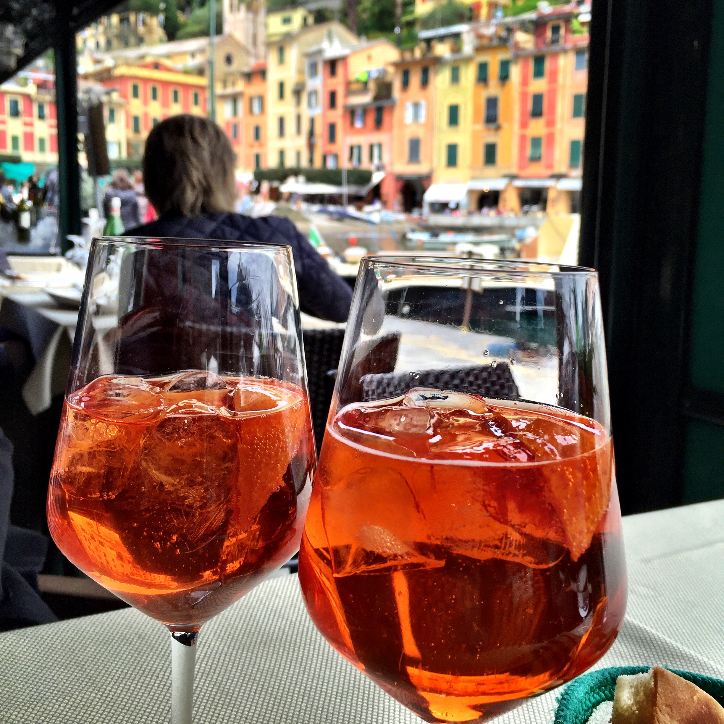 Despite the eclectic modern art, Portofino is a traditional old town. We stopped at a spot on one side of the port and a young waiter told us his family had owned the restaurant for eight generations. Later on the other side of the port we met someone who looked a lot like him. (Do all Italians look alike to Americans?) It was his twin brother at another family restaurant. In Portofino we discovered Aperol Spritz, a distinctly Italian drink, very sweet and refreshing. It will be the drink of the summer at Keuka Lake.