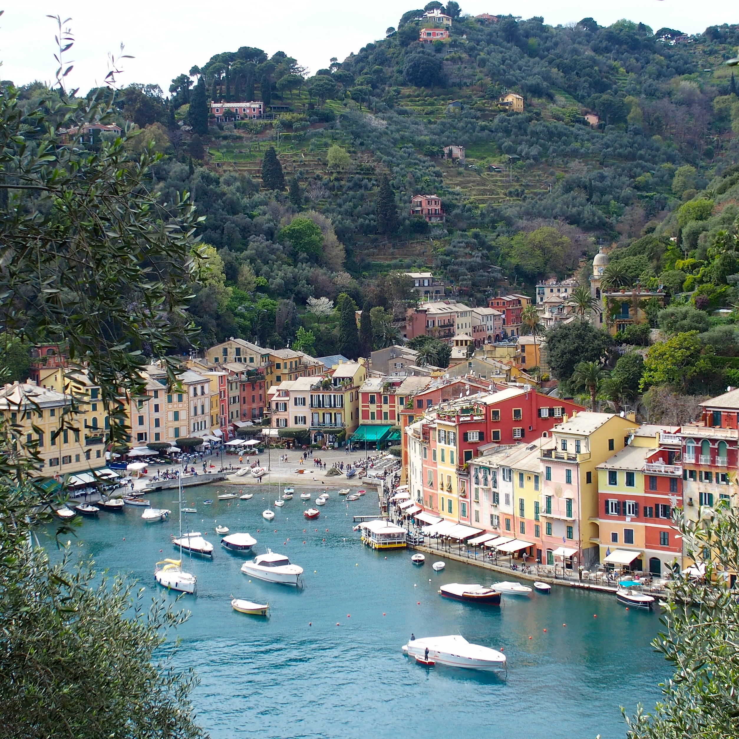South of Genoa, we stopped in Portofino. This required taking a ferry, much more fun than taking a car to this remote coastal village. Portofino is a tall, straight up and down harbor town, a “fine port.” Here we saw the first of many coastal Italian towns with colorful pastel buildings.
