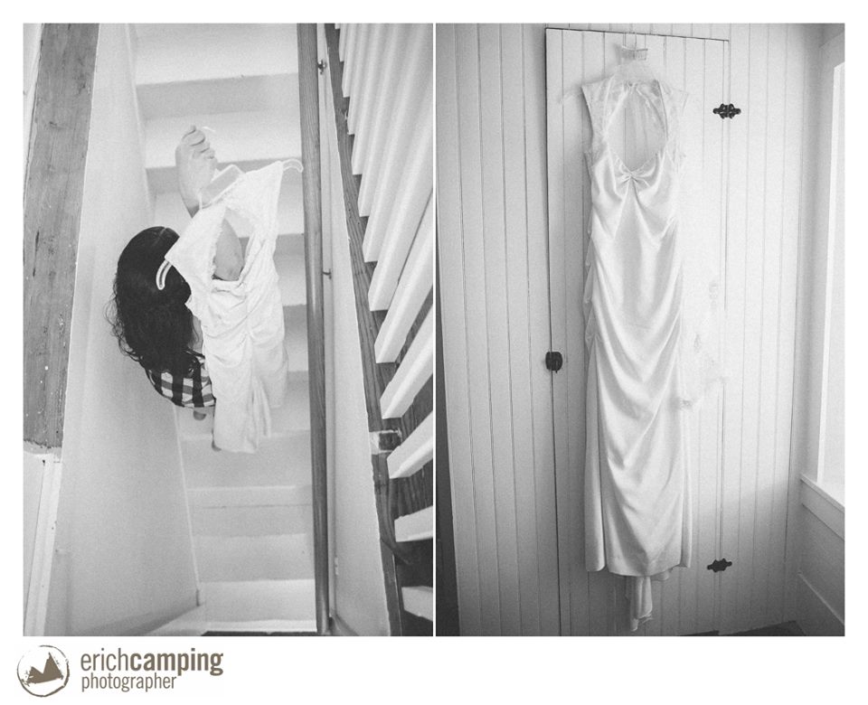Liz’s Aunt Kathy and Uncle Stephen invited the bride to get ready for the wedding in the historic 1870 Stonehouse they had rented, conveniently located rolling-down-the-hill distance from Abandon. Kathy arranged for Tabitha of Tropic Salon of Penn Yan to do hair.