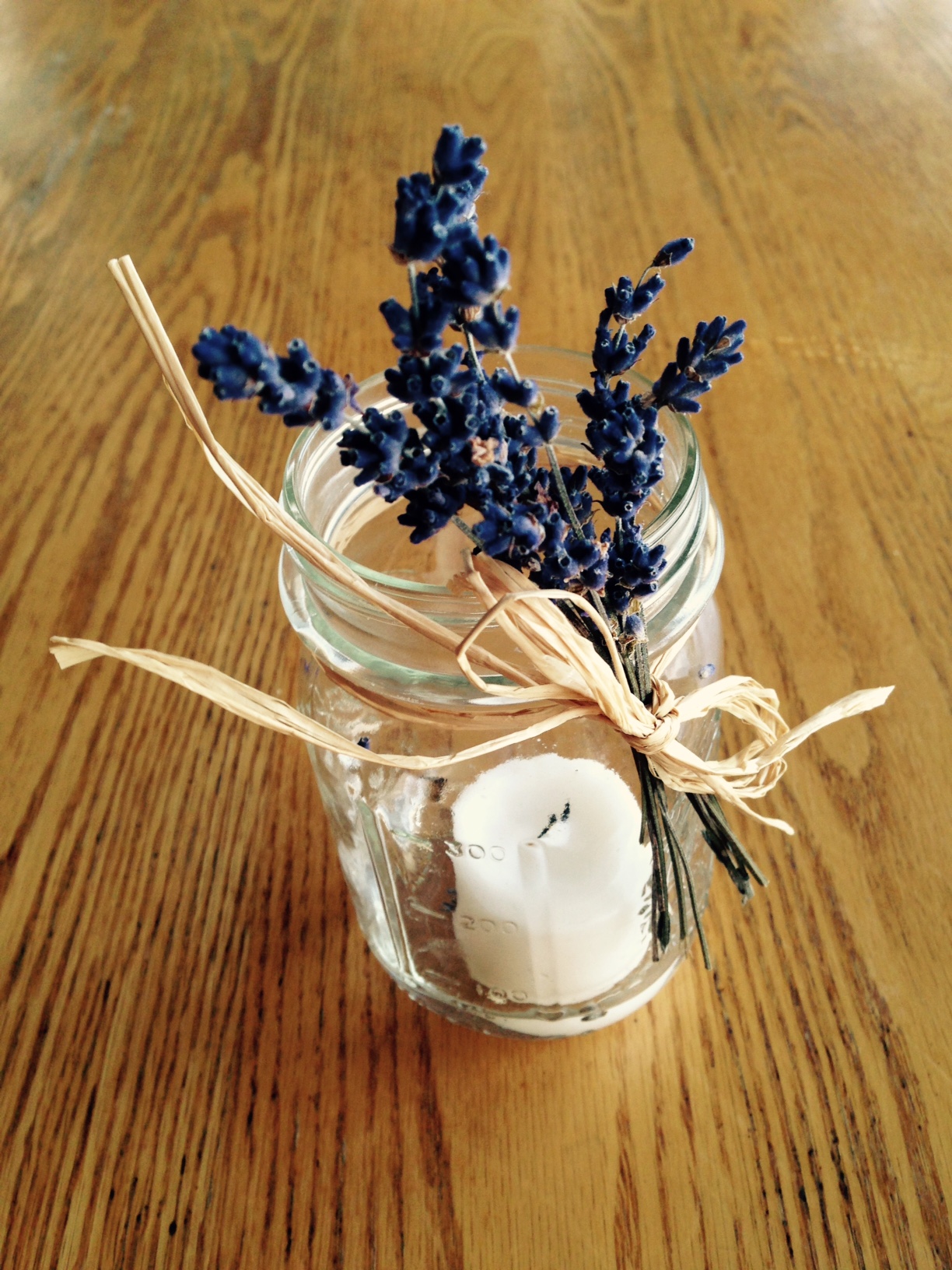 And the jam “after” photo with lavender or white covers (usable to loosen tight jar lids). Michael and Philip are now raffia artistes.