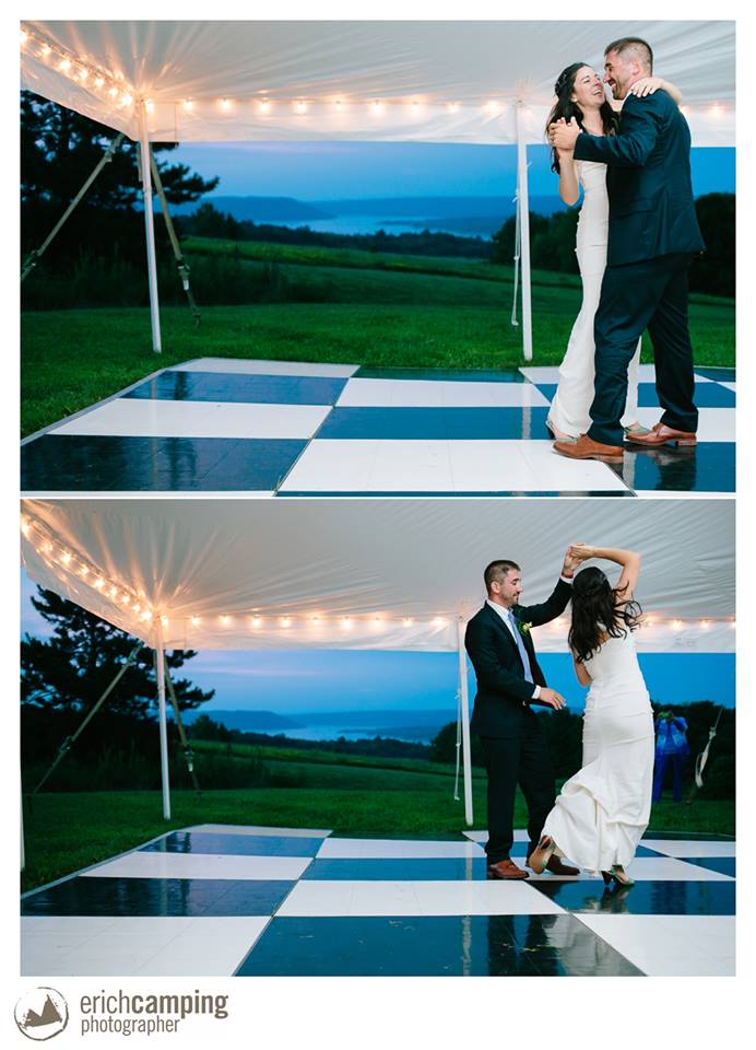 We booked Art and Missy Sable’s Manor House, just a few miles from our house, for a spot for Liz, Jesse, and many of the wedding guests to stay. We soon realized that it was a perfect location for the reception. We could set up a tent with beautiful views of the lake. Liz booked a luxury bathroom trailer from Crescent Moon Restrooms of Farmington. The tent came from Tailored Events in Canandaigua.