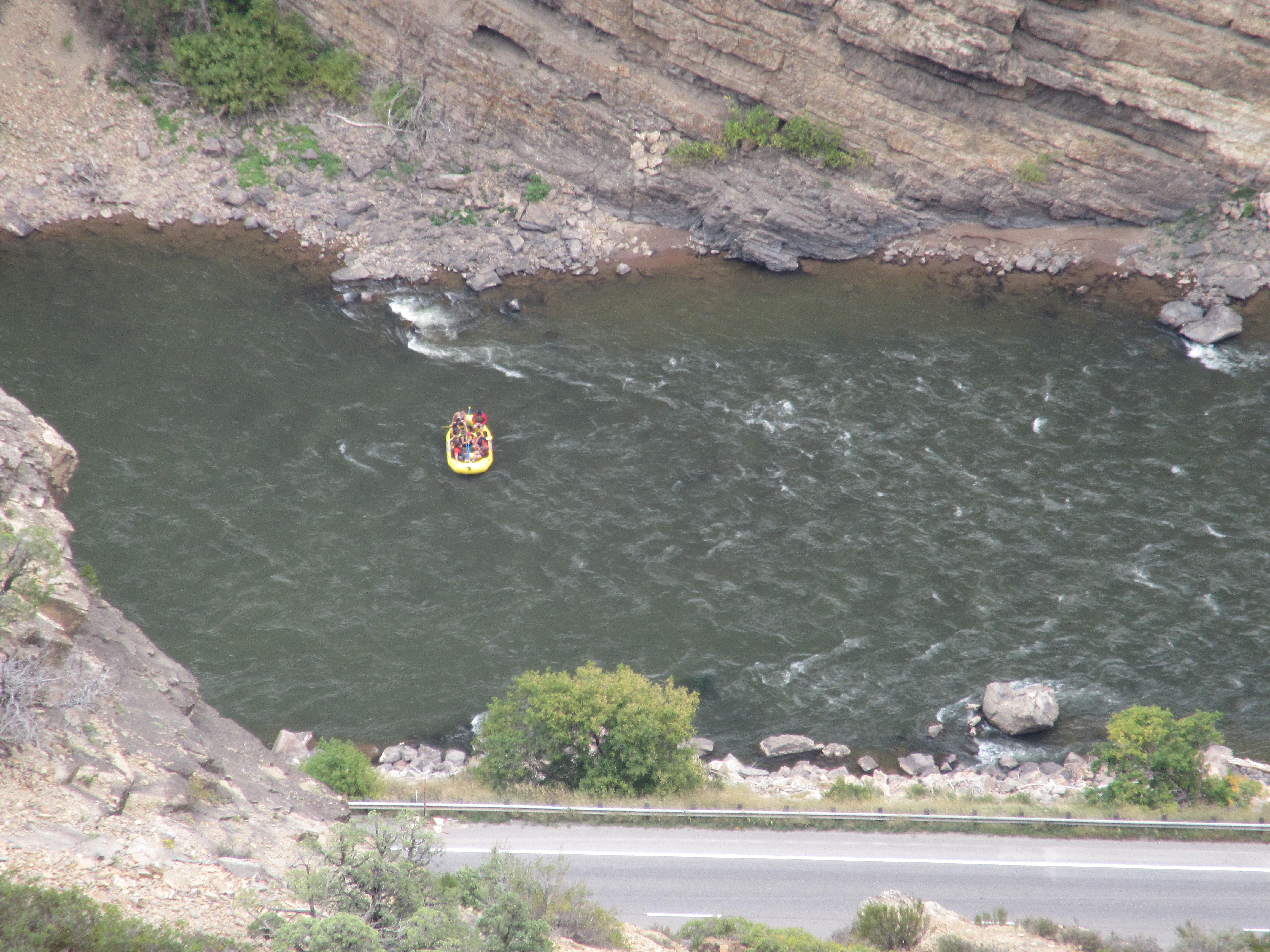 Here it joins the Roaring Fork which flows in from Basalt, where Pat and Jordan live. We could look down on the combined rivers and see people floating along in blue or yellow rafts.