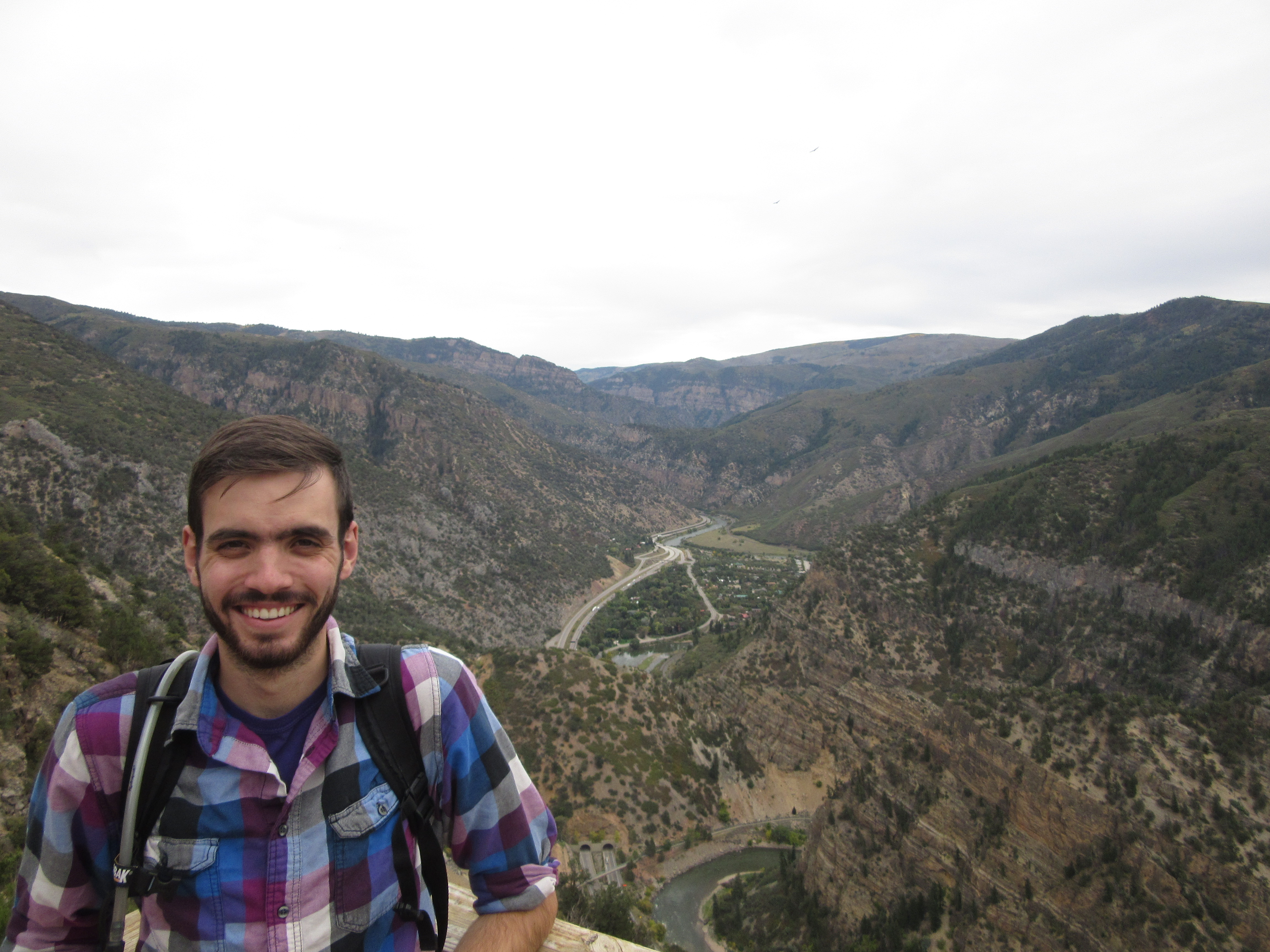 The Colorado meandering south after teaming with the Roaring Fork. Patrick racing downhill. Look Ma, no brakes the whole way.