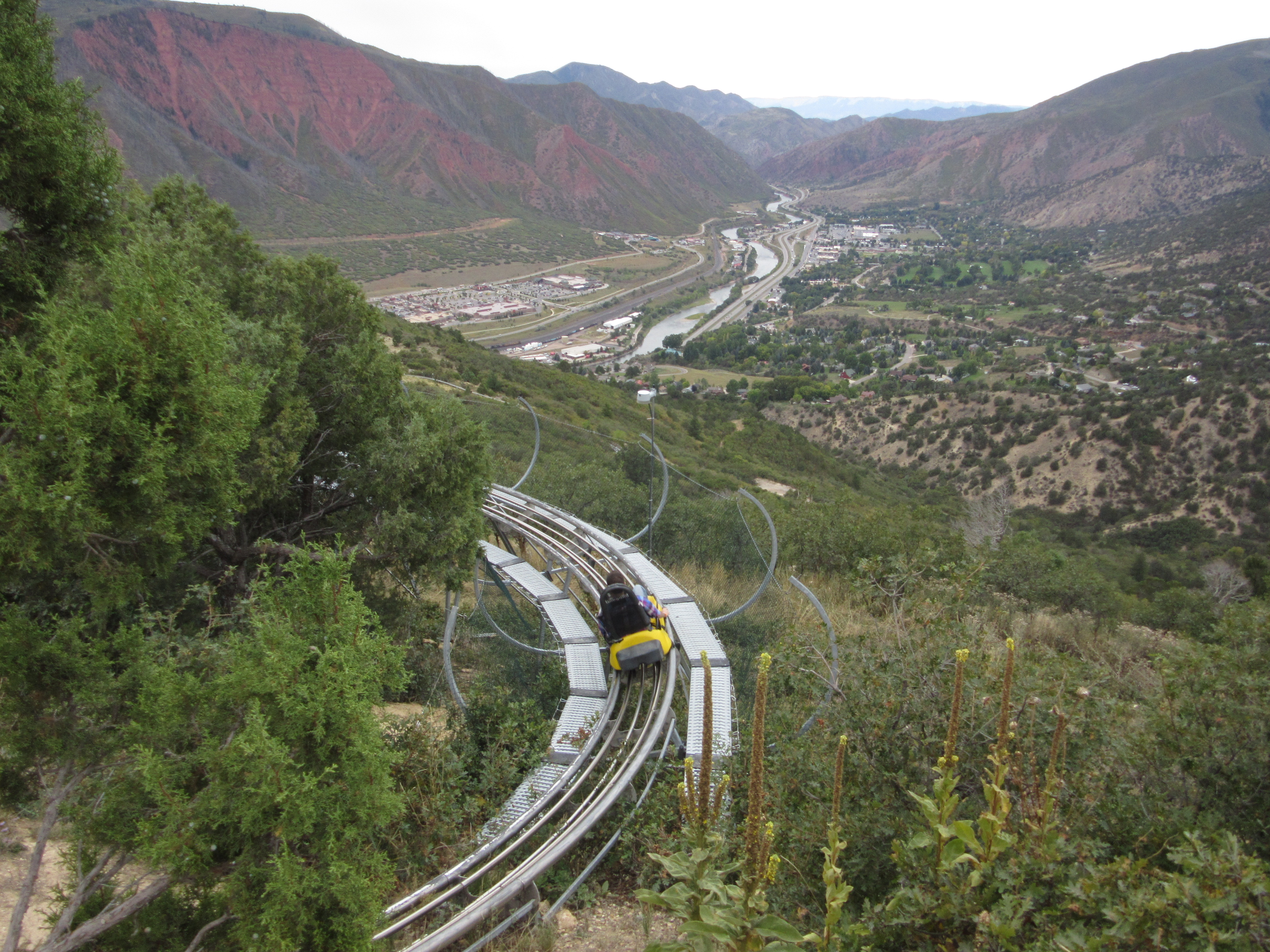 Glenwood Springs Adventure Park is 1,300 feet in the air over the rivers. Pat did a quick ride on the alpine slide.