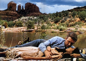 Burt Lancaster (playing an Apache Indian) in Apache. He’s about to cross Owl Creek, heading toward Cathedral Rock, 1954