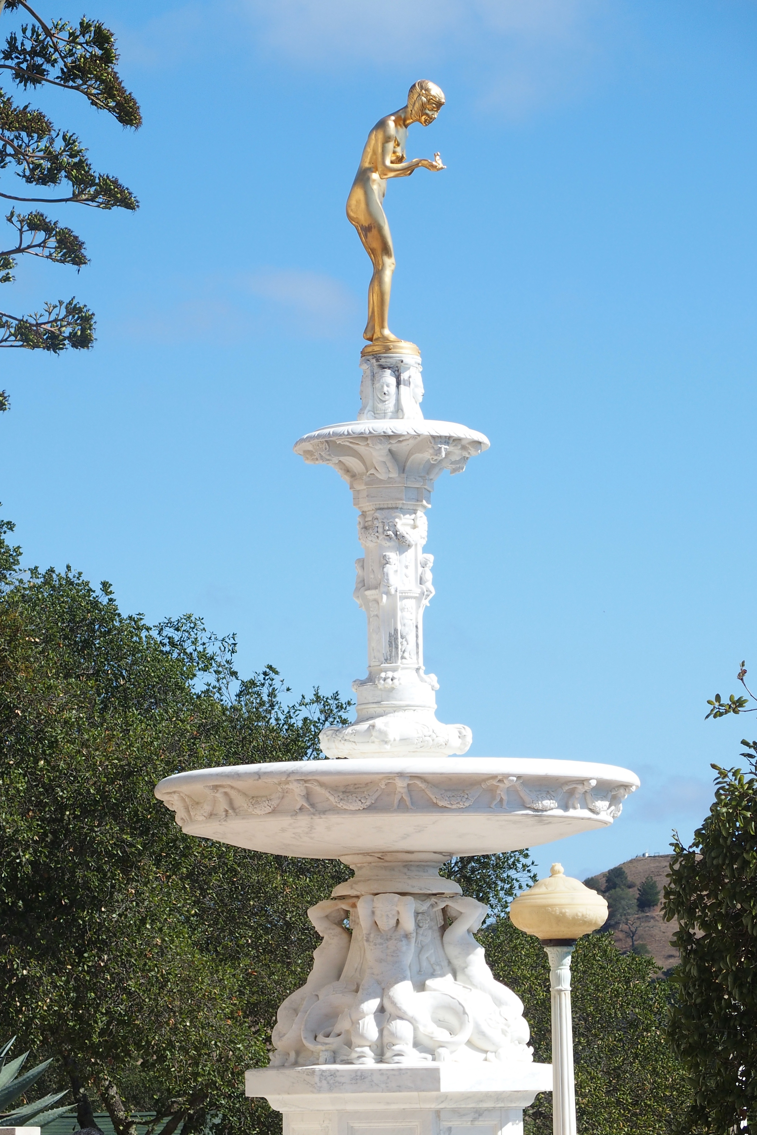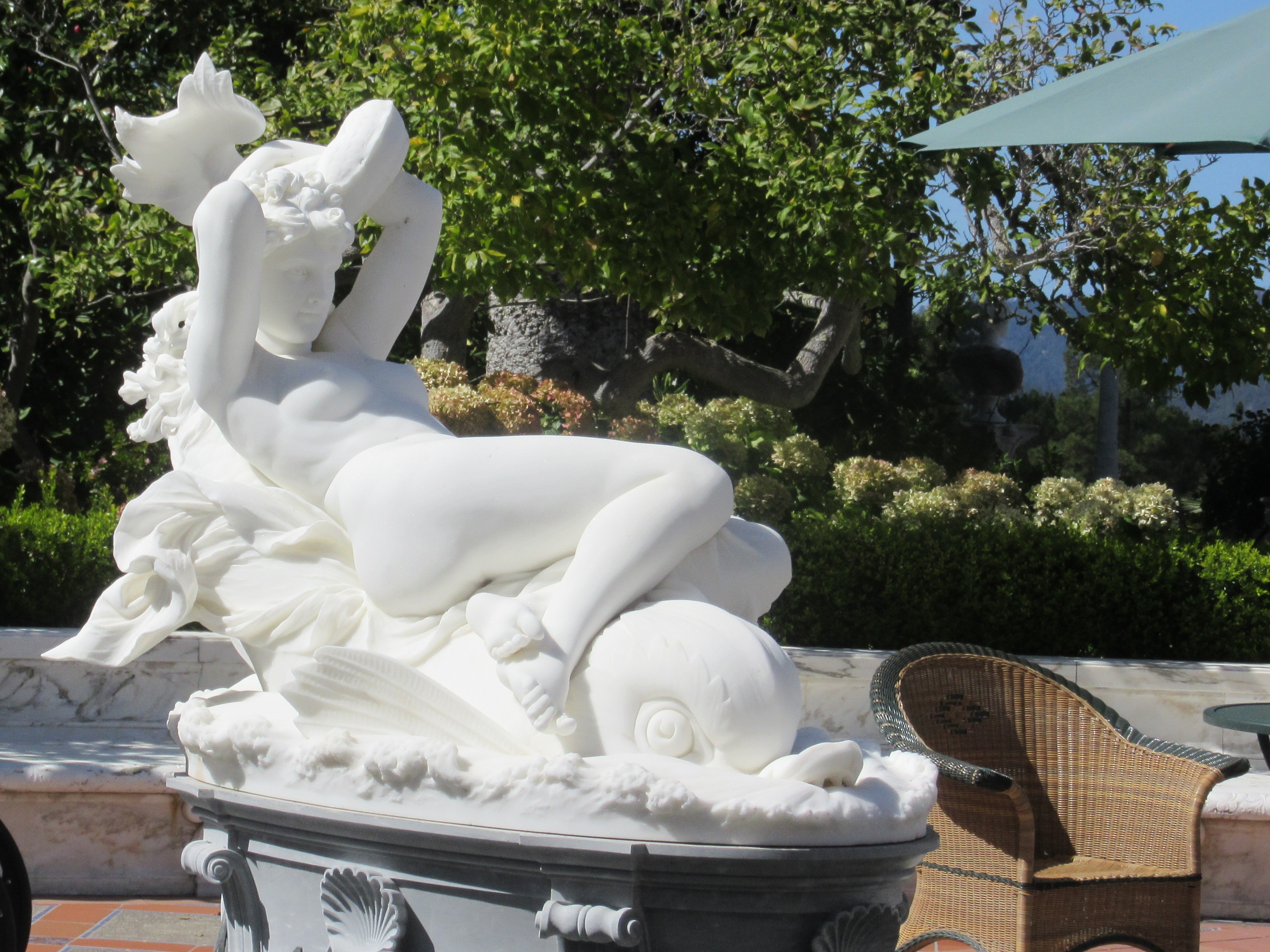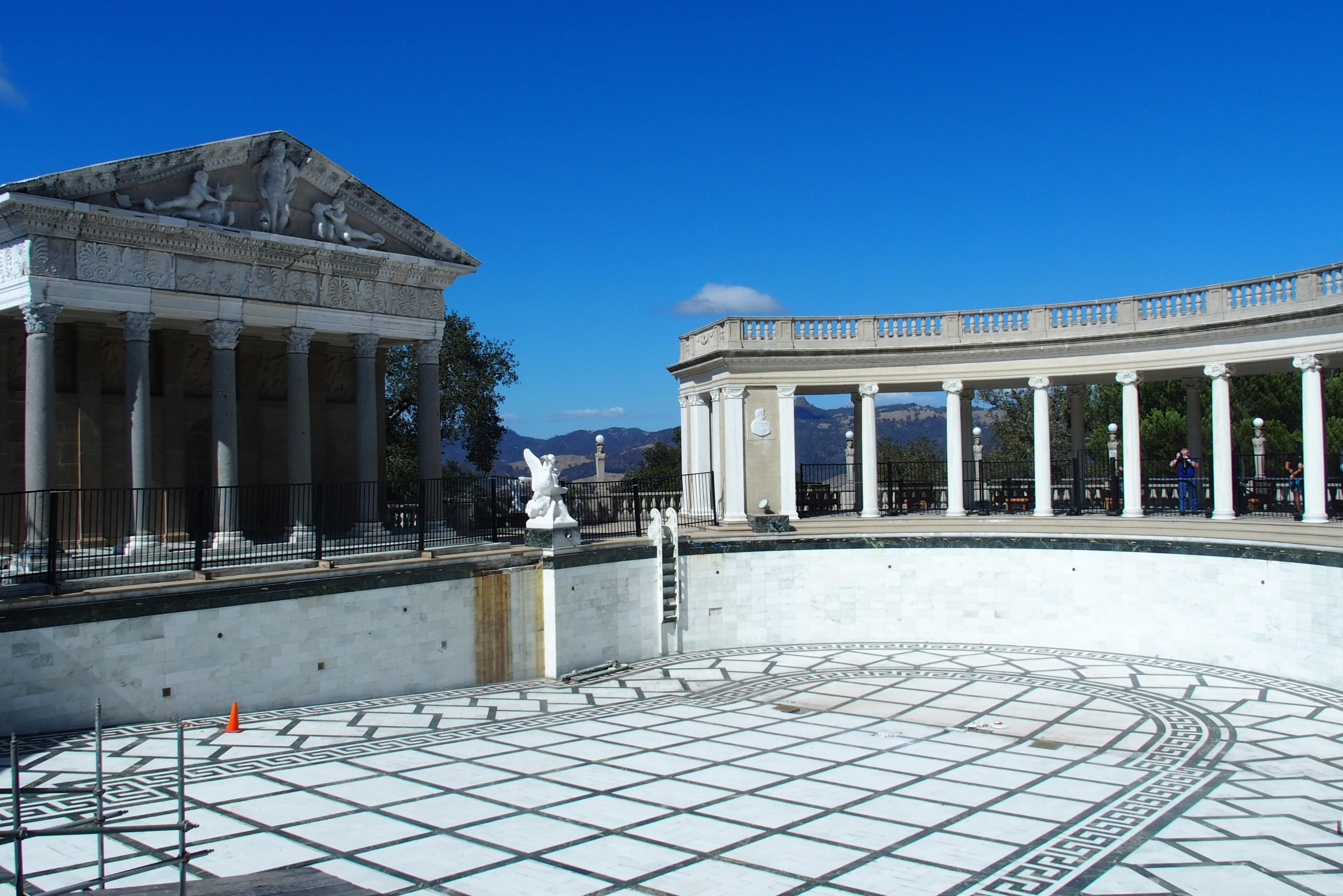 The Neptune Pool looks like a great setting for an Esther Williams movie. It’s over 100 feet long and up to 10 feet deep. Even more impressive are the bas-reliefs, Greek columns, and Vermont marble. The pool was drained several years ago to repair leaks. Given the drought conditions in California, there are no plans to refill it with the 345,000 gallons it holds.