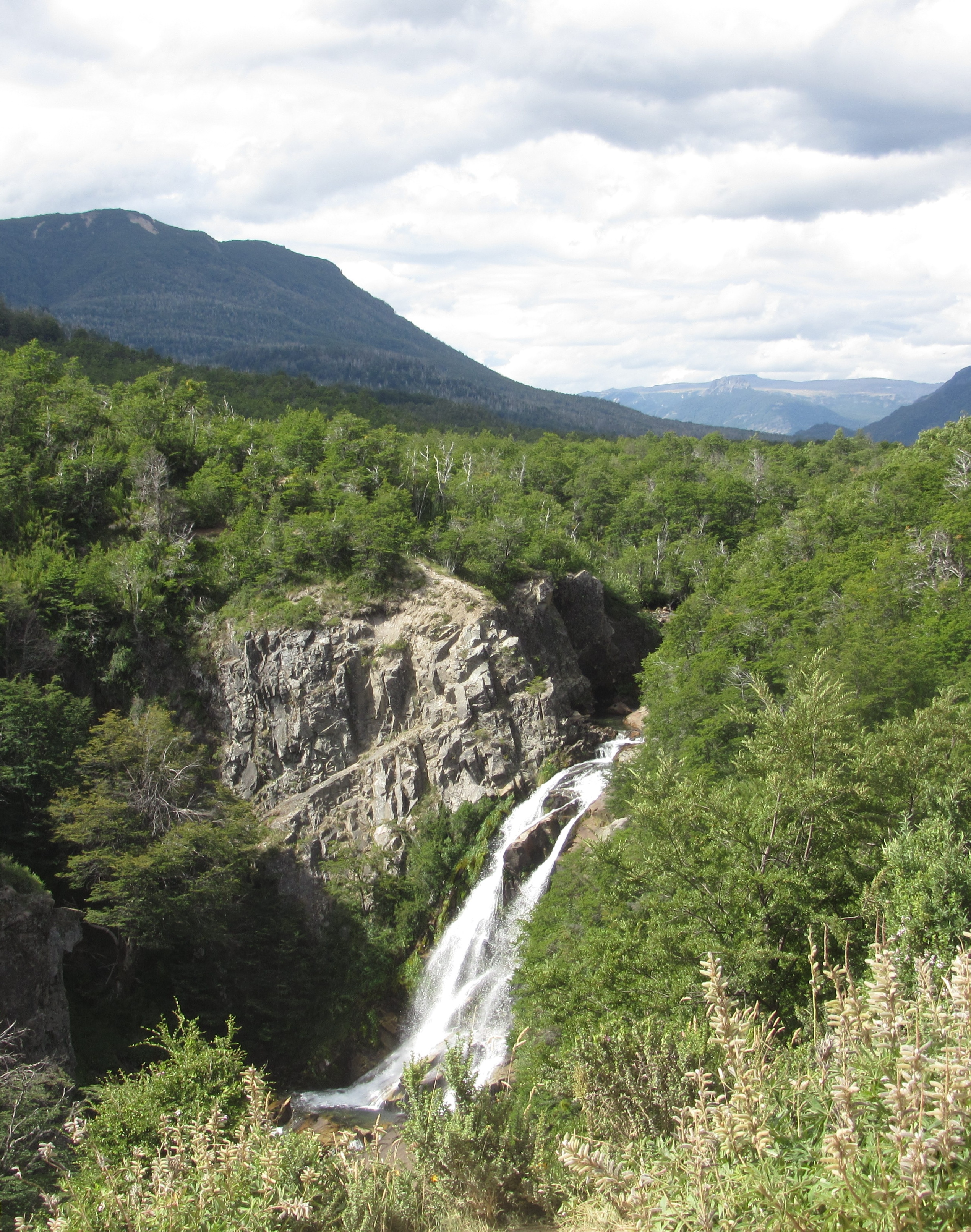 The national park has a short circuit (Circuito Chico) and a long circuit (Circuito Grande) around parts of the lake. Michael biked the short route, competing with speeding cars on the narrow twisty road. See his route and photos on Strava. We also drove the long route, passing seven lakes and numerous waterfalls (cascadas).