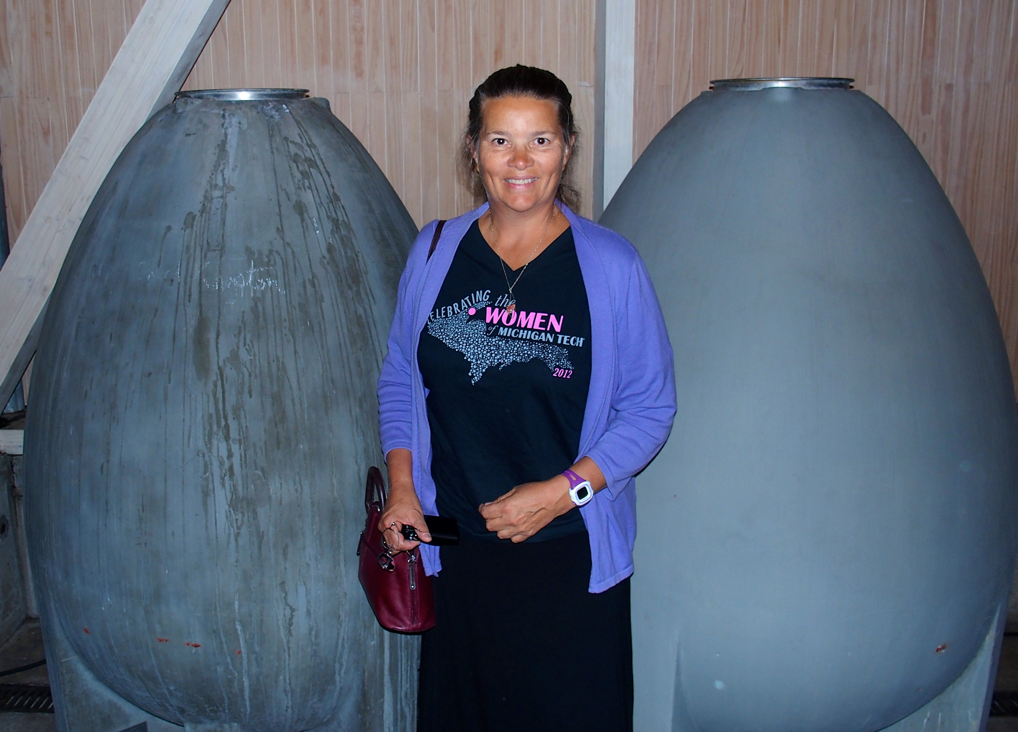 The civil engineers at Michigan Tech who participate in concrete boat racing would be impressed by another practice. Kingston uses concrete eggs to ferment some of the Chardonnay. The shape means no dead spaces as in traditional tanks and barrels. Some of the grapes are fermented in French oak barrels for rich flavor. Then the two portions are blended in specific percentages to give optimum flavor. It’s good, we agree wholeheartedly!