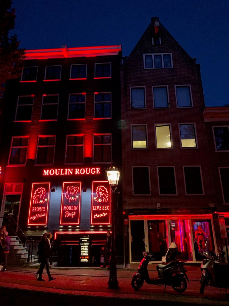 When we visited De Wallen, most of the folks on the streets seemed to be tourists like us, enjoying a walk along the canal, not interested in engaging with the ladies. We did observe one gentleman trying to negotiate a deal, but the young lady either didn’t like him or the amount he offered and she sent him away. It’s always good to be your own boss.