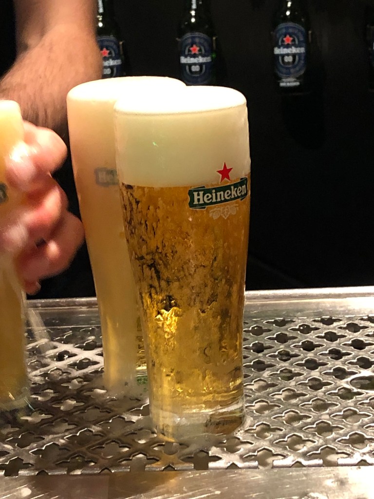 When in Amsterdam, visitors must drink Heineken, the beer first made here in 1864. We stopped at the Heineken Experience in one of the original breweries, unused now since 1988. A key learning was that the beer should be poured so the bottom of the foam lies at the “arms of the star” on a Heineken glass, preventing the bubbles from escaping from the beer and keeping the taste fresher. Be sure to try that at home.