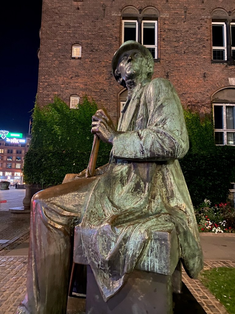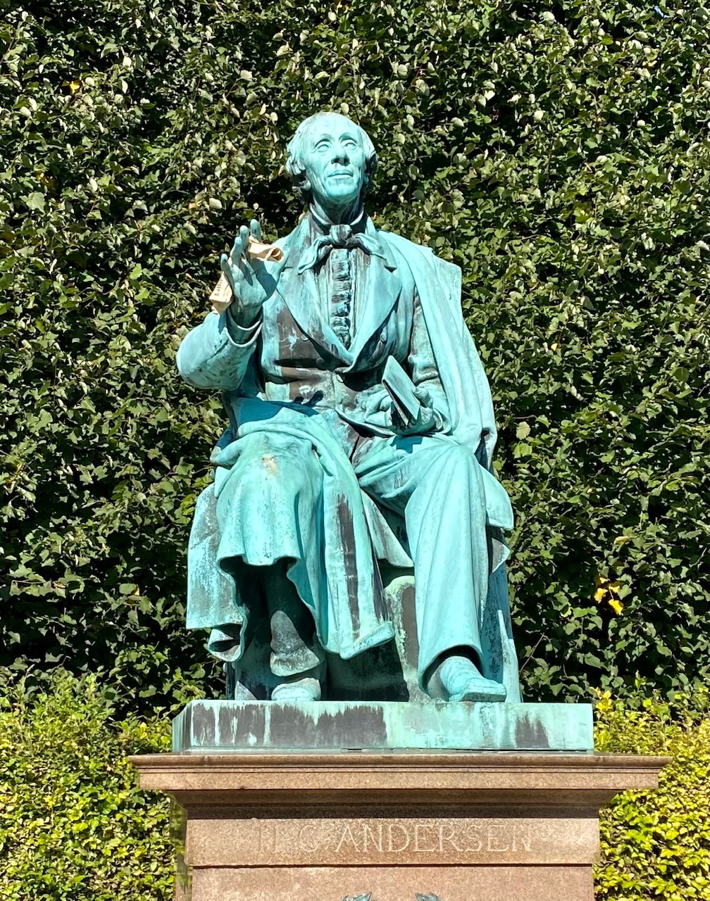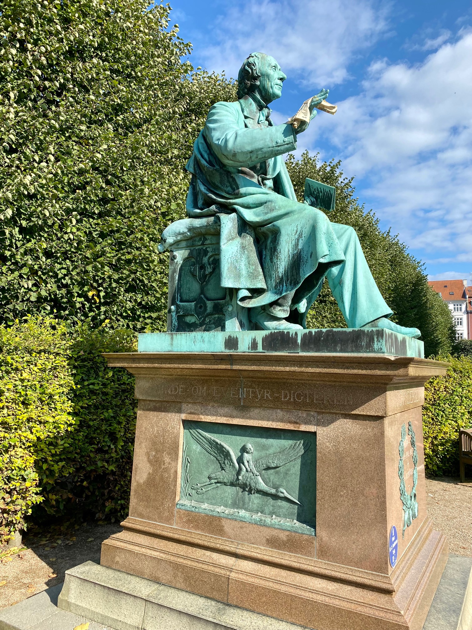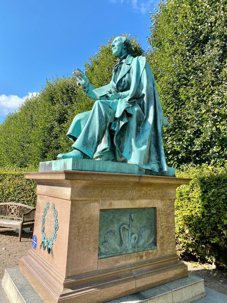 Back to Hans Christian Andersen, who is everywhere in the city: H.C. Andersen Boulevard is one of the main streets through the downtown area. There is the Hans Christian Andersen Experience (a Ripley’s operation that we chose not to visit). A memorial to the writer in King’s Garden shows him with book in hand and two illustrated stories at the base, one “The Ugly Duckling,” one of his swan stories. The other is “The Stork,” an explanation of the concept of storks delivering babies, with a rather macabre twist at the end.