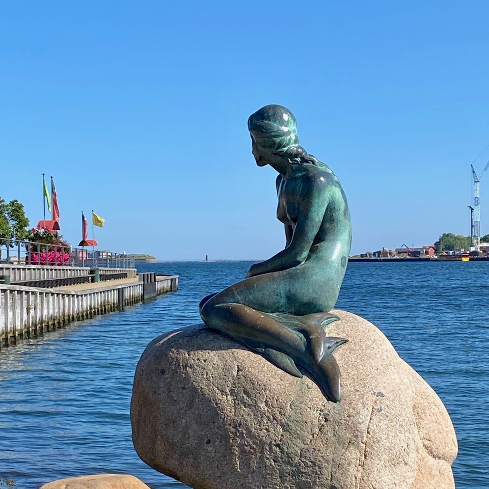 Another of Andersen’s most famous stories is “The Little Mermaid.” One of Copenhagen’s most famous statues is the little mermaid herself sitting on a rock in the harbor. The sculptor Edvard Eriksen created the statue in 1913, with his wife Eline posing as the mermaid.