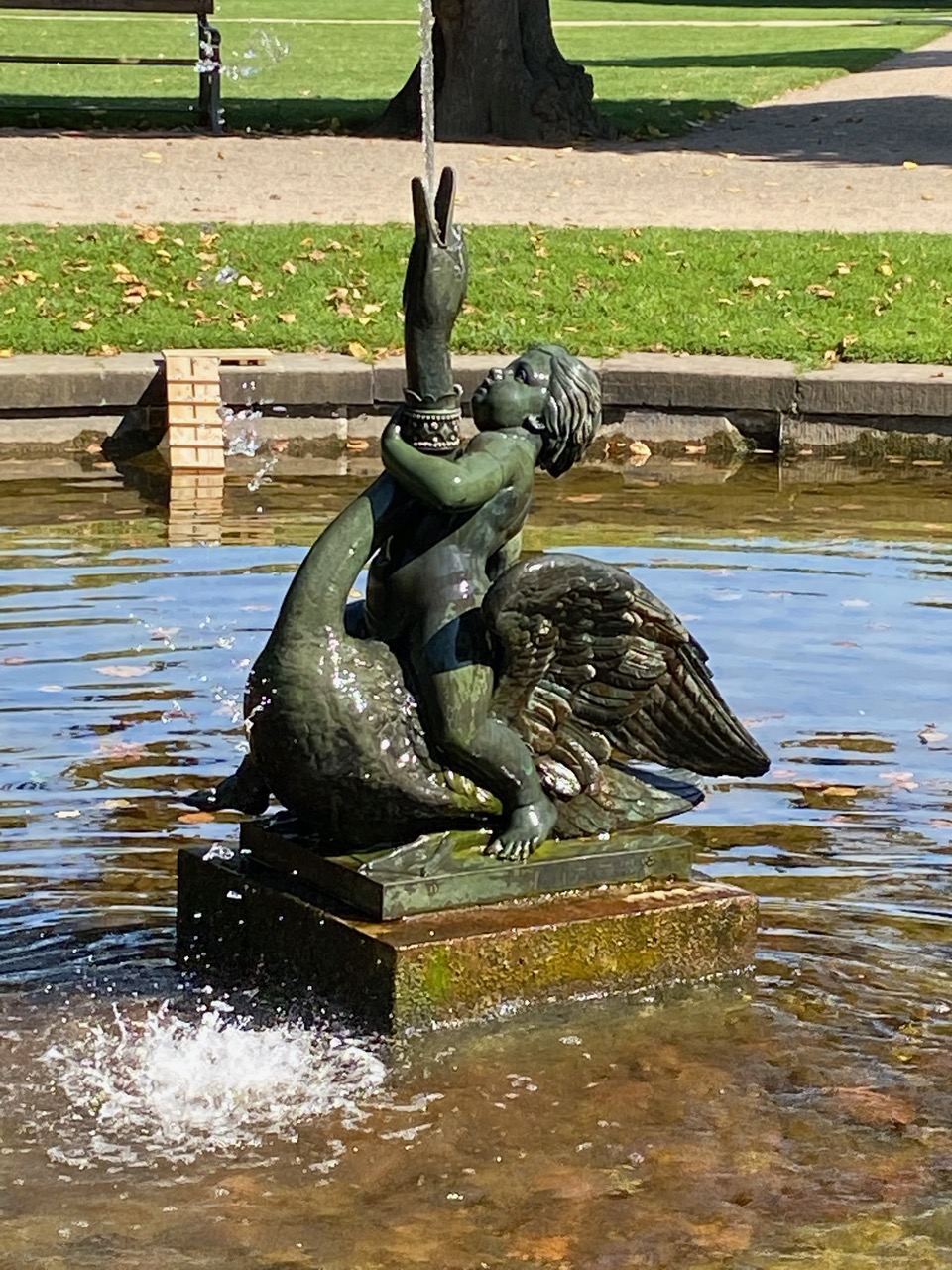 We also saw swan statues. In the King’s Garden outside Rosenborg Castle is the famous fountain, “The Boy on the Swan,” which was initially installed in a slightly different form in 1735, three generations before H.C. Andersen was born in 1805.