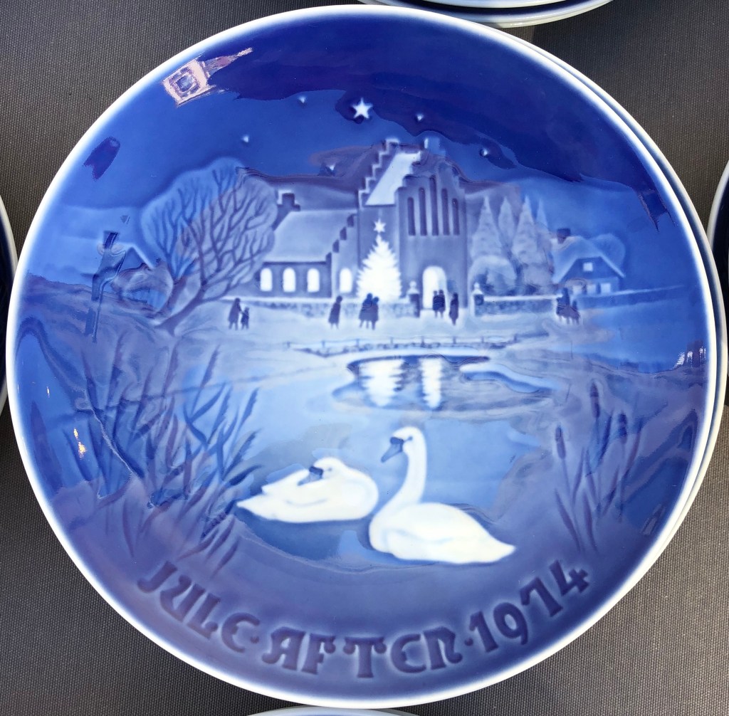Denmark’s swans have made it onto Royal Copenhagen porcelain. Since 1908, this long-established Danish china company has minted collectible Christmas plates. In 1974 the Christmas plate was an owl, but somehow the swan made it onto an AFTER Christmas plate.
